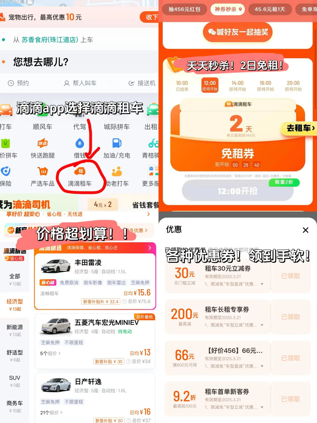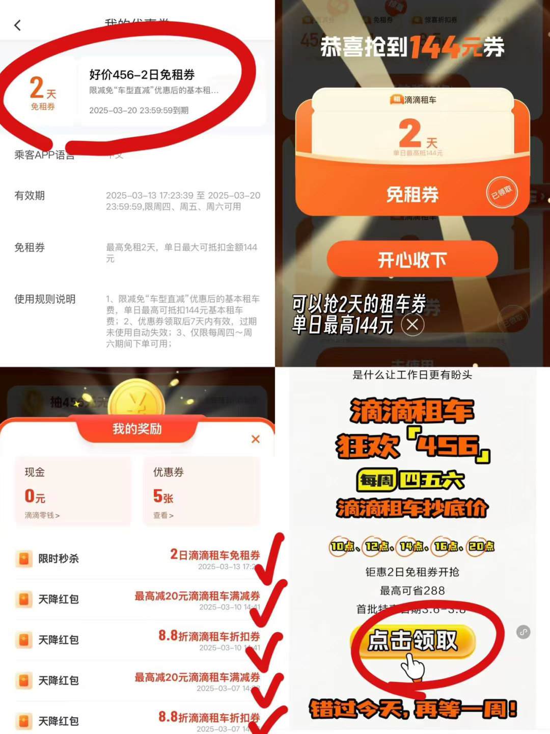 🟣现在滴滴租车推出的狂欢「456」真的很划算~