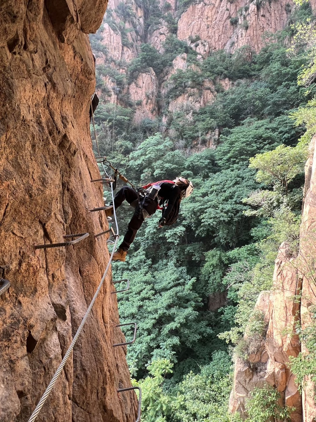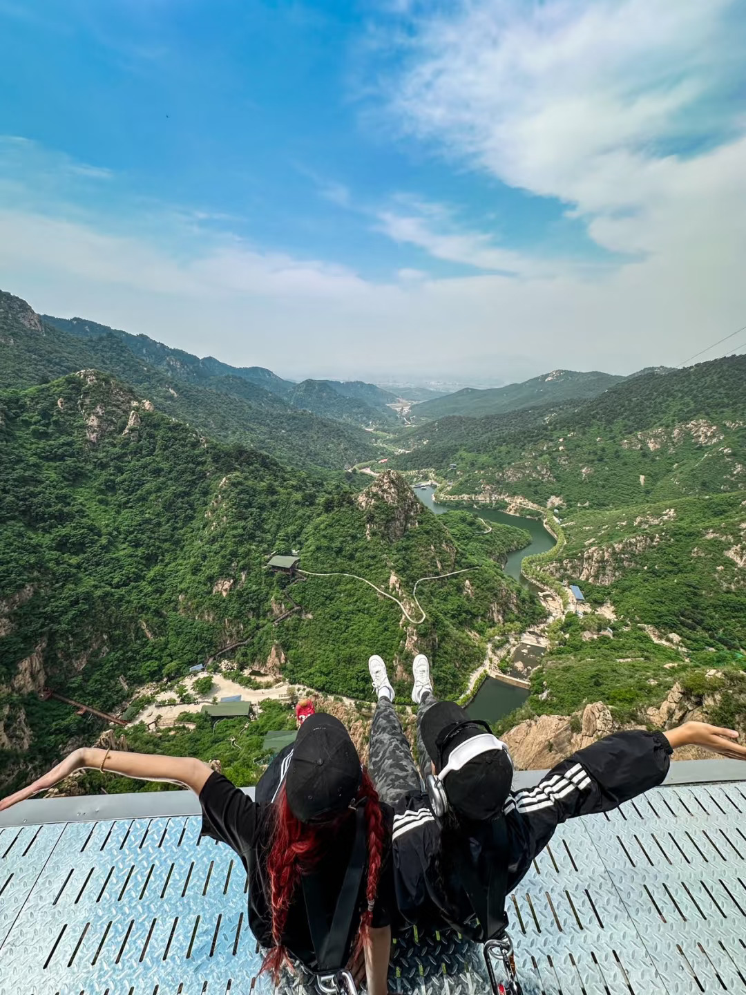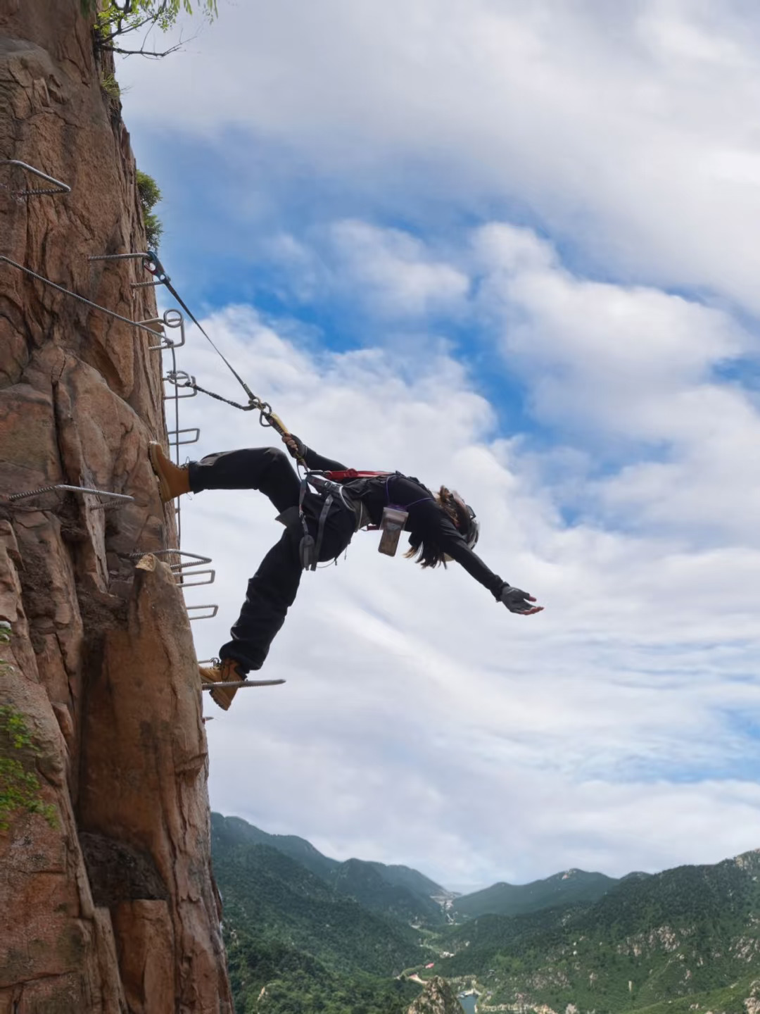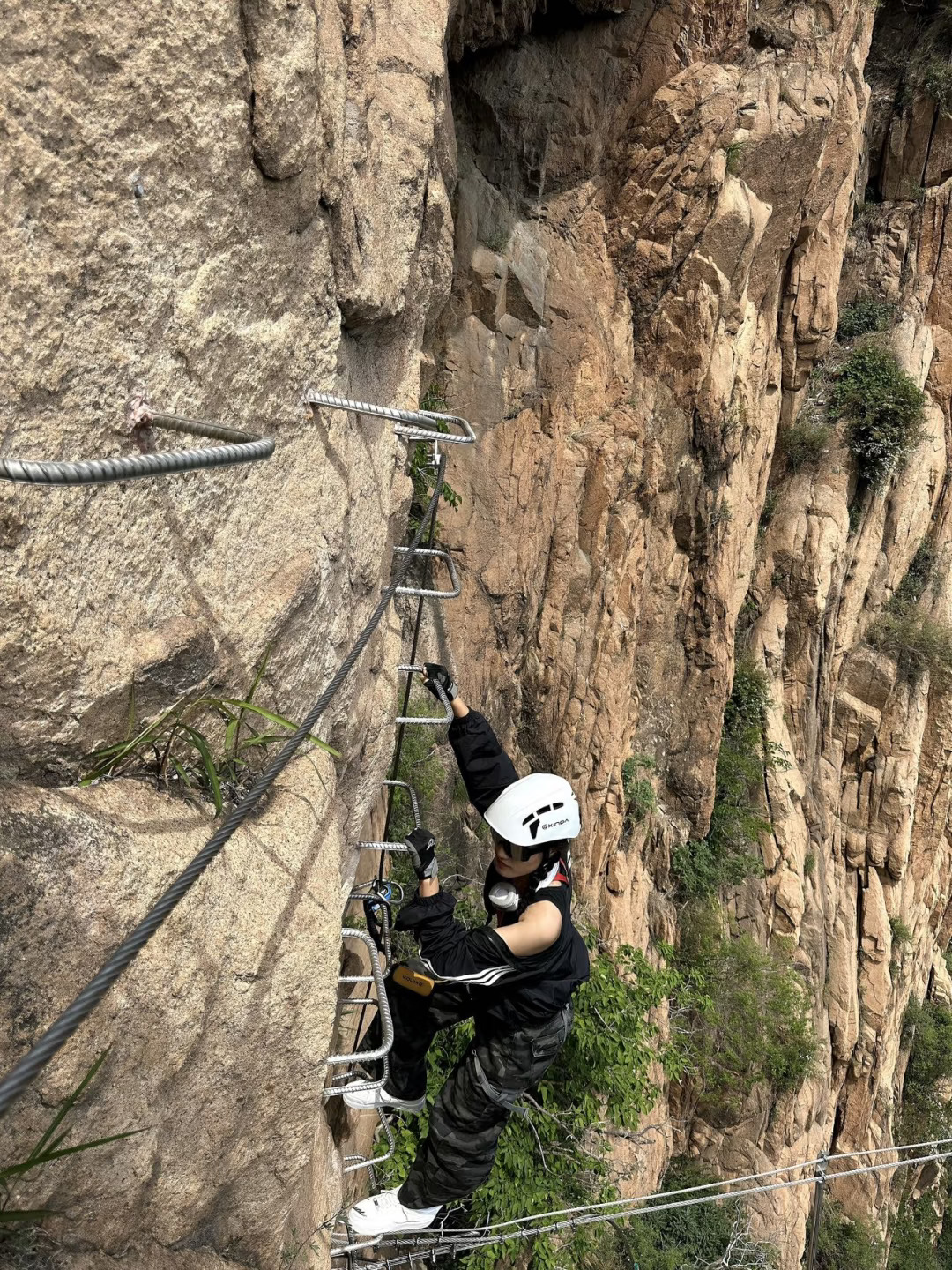 谁说秦皇岛只有海边能玩? 这次在龙云谷体验了一把飞拉达,简直刷新了我的肾上腺素上限!😱 站在悬崖上抓着铁索攀爬,脚下是百米高空,眼前是绝美山景,这种刺激感真的会上瘾! -