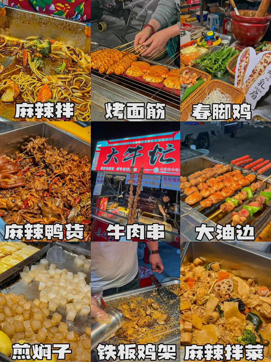 五一来秦皇岛的宝子们! 一定要来公富庄夜市! 我只能说跟着大学生吃准没错~ - 美食推荐📝 1.左老板糯叽叽麻糍 2.大海成都冷锅串串 3.依依榴莲芝士饼 4.泰柠手打柠檬茶 5.阿福柠檬无骨鸡爪 6.禧果潮汕甘草水果 - 公富庄夜市!还有什么宝藏美食! 给我留在评论区❤️