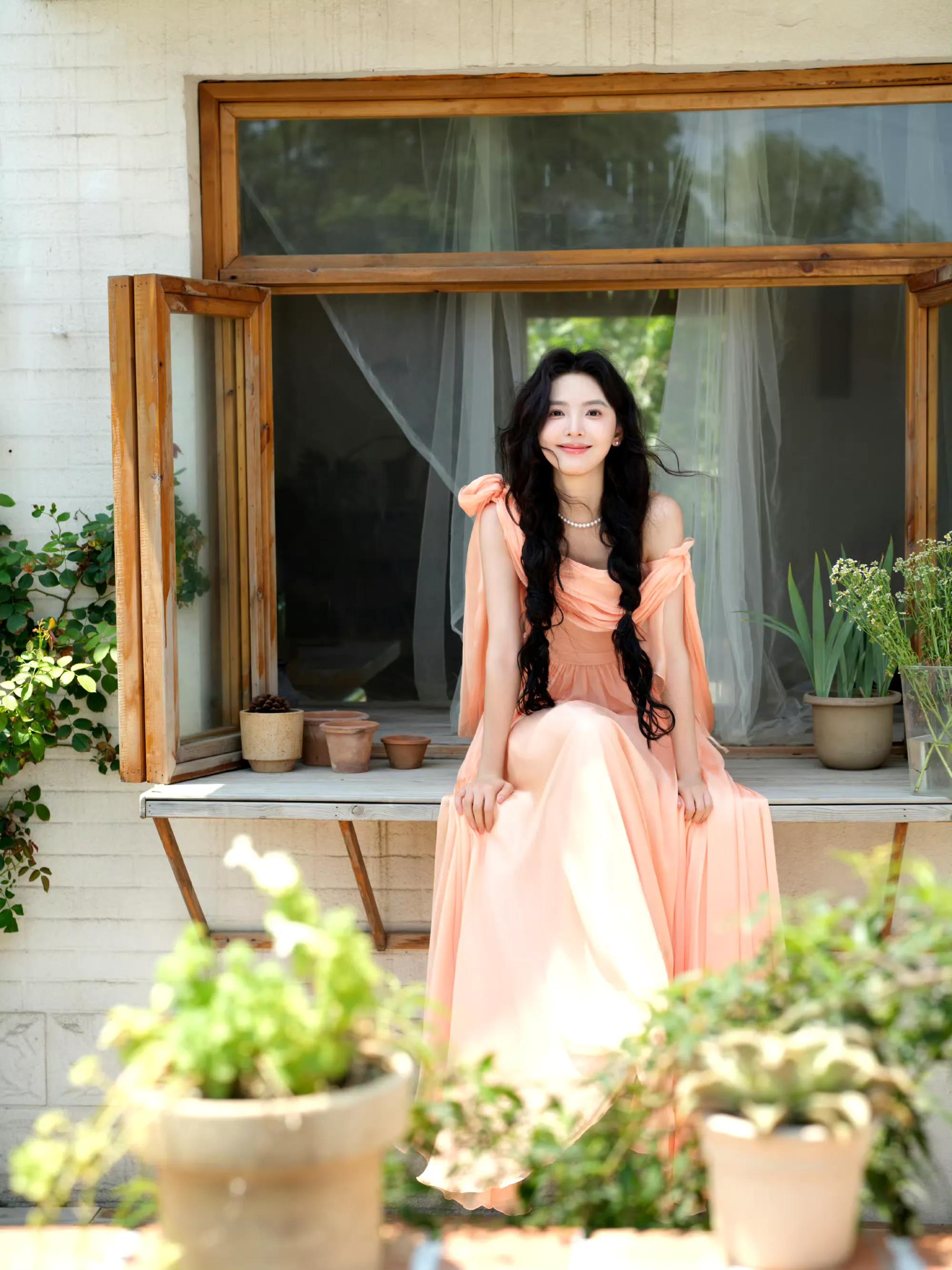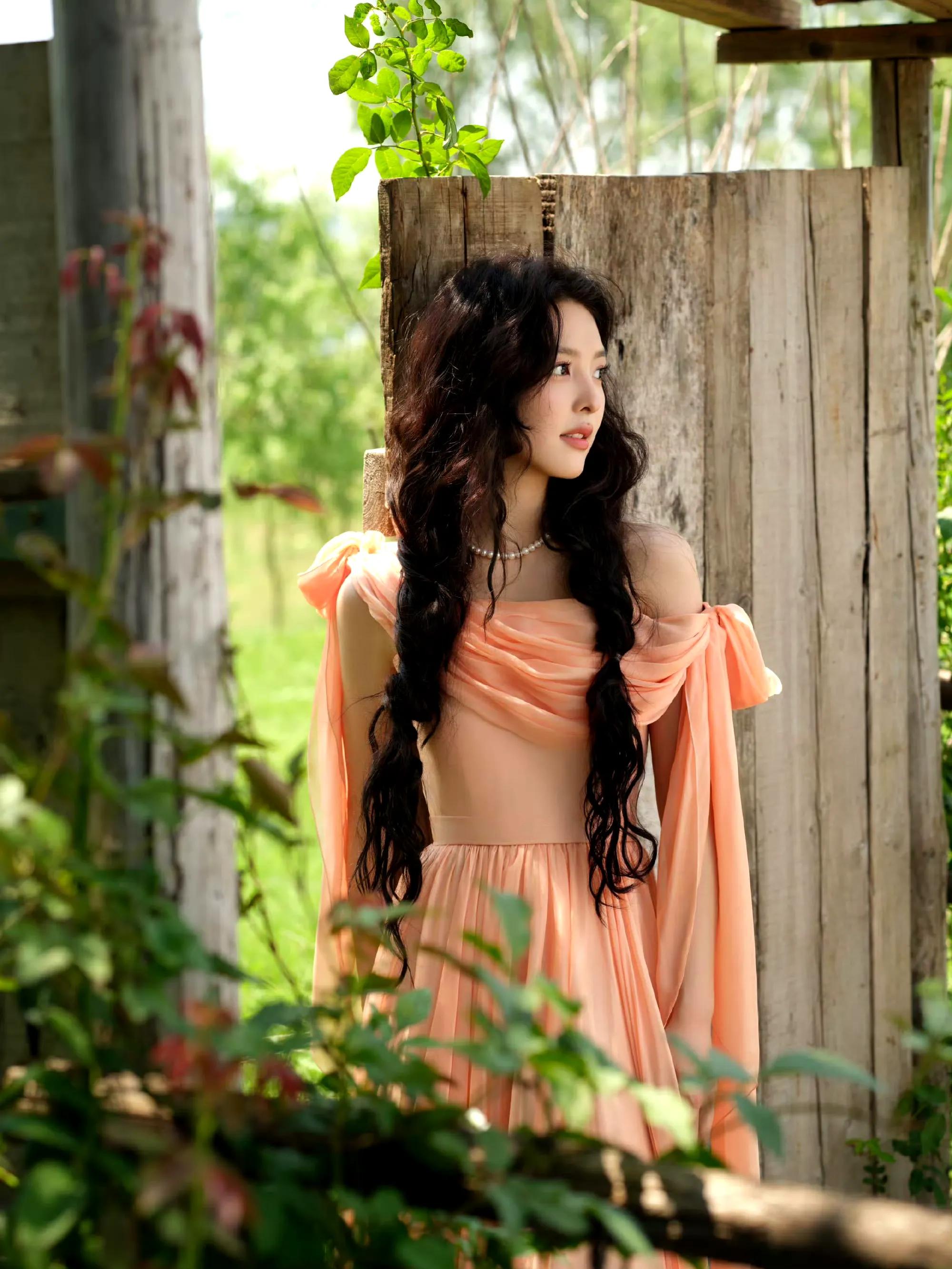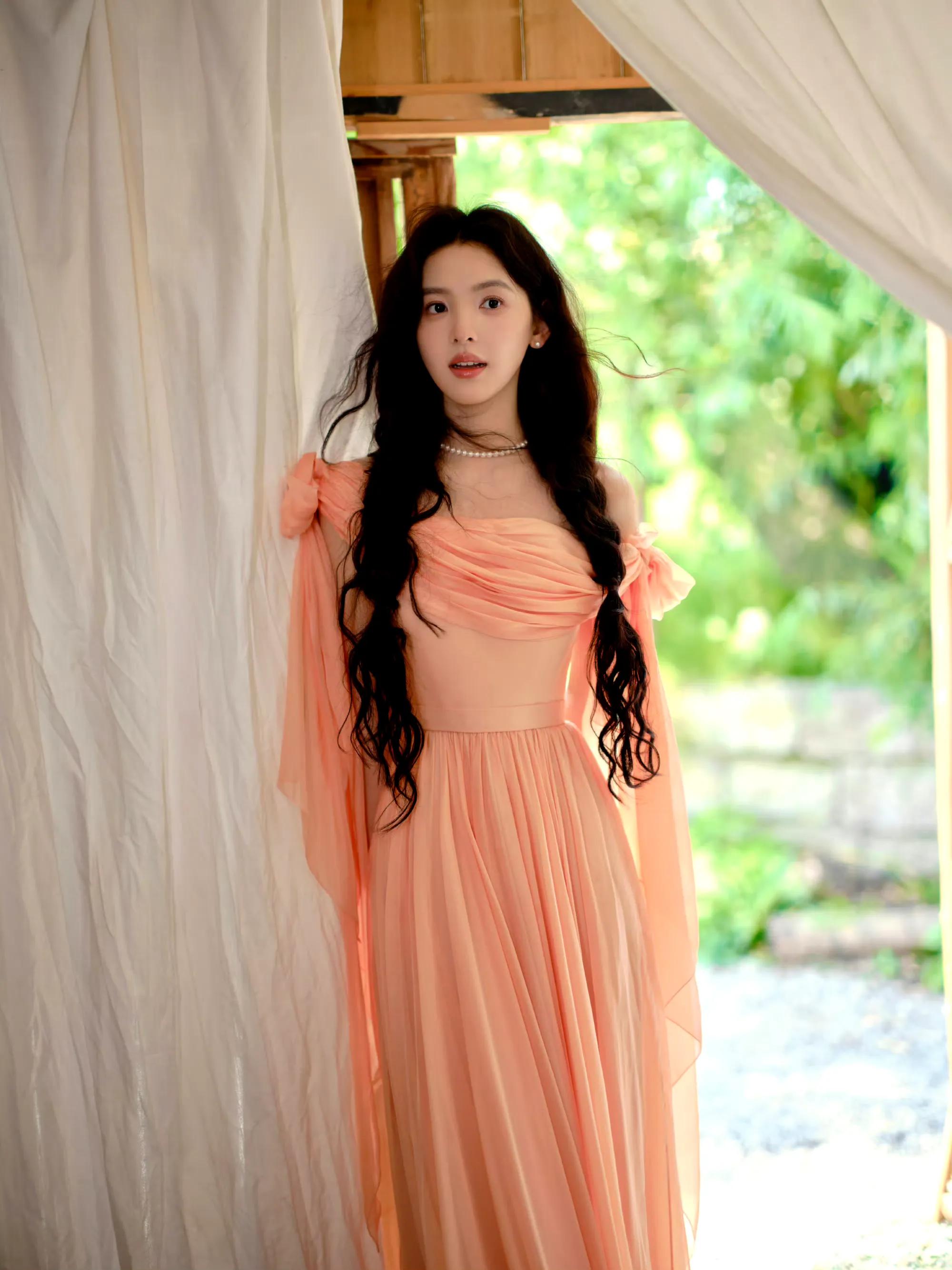 章若楠橙色抹胸礼裙, 夏日的阳光少女