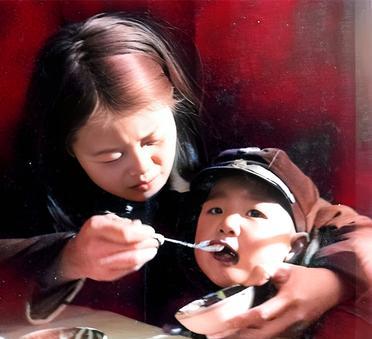 这是三十年代在北京一处庙会上的食摊上一位阔太太带着孩子将要吃饭。阔太太长着一张大气富态的面容,身披毛领子的大氅,一双眼中透出比三九四九天更冷的寒光。这是因为摄影师在没有她的允许下对着她拍照。她倾侧着头,一道寒光从双眼中射出,却巧恰被拍了下来。旁边的孩子一脸的好奇。她应该从来没有见过照相机。 当年,庙会食摊上的小吃味道相当不错。一些吃惯了山珍海味的阔太太们也会趁着赶庙会的时候到食摊寻找山珍海味之外的美味。尤其,孩子们就喜欢这些地摊小吃。这些小吃非常适合孩子们的口味。孩子央求大人带着赶庙会除了买玩具就是吃小吃。孩子们在家里吃得并不多,但到了食摊上似乎又吃不够。