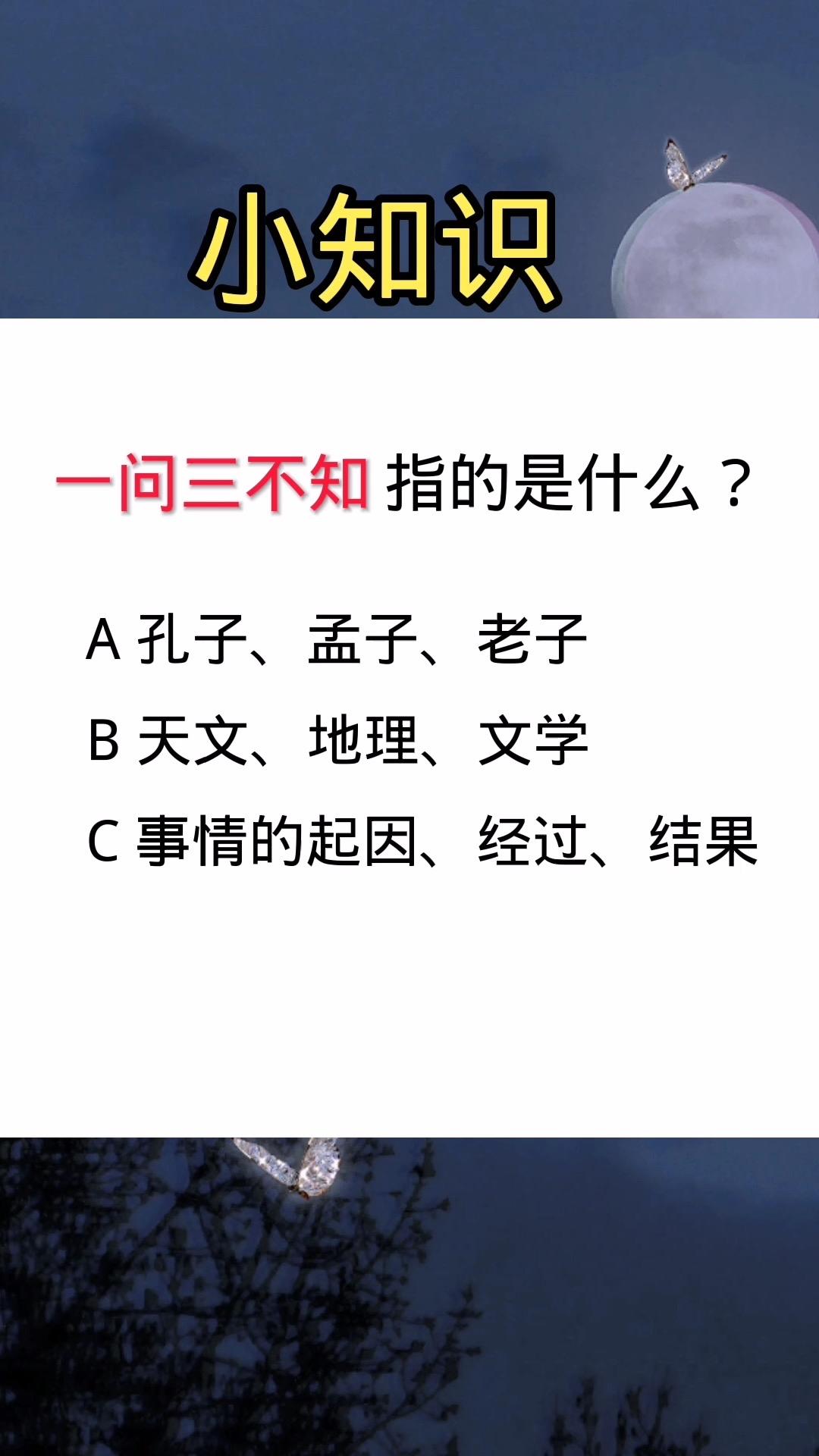 一问三不知,是哪三不知? 一问三不知,是来源于历史故事的成语,相关典故最早载于《左传·鲁哀公二十七年》。 记载晋国荀寅因未了解战事的“始、衷、终”三阶段而贸然行动,感叹“君子之谋也,始中终皆举之,而后入焉”,后演变为成语。 “一问三不知”原义是对某一事情的开始、发展、结果都不知道(三不知:指对事情的起因、经过、结果都不知道),后用来表示对实际情况一点也不知道。其结构为联合式,在句中可作分句,含贬义。