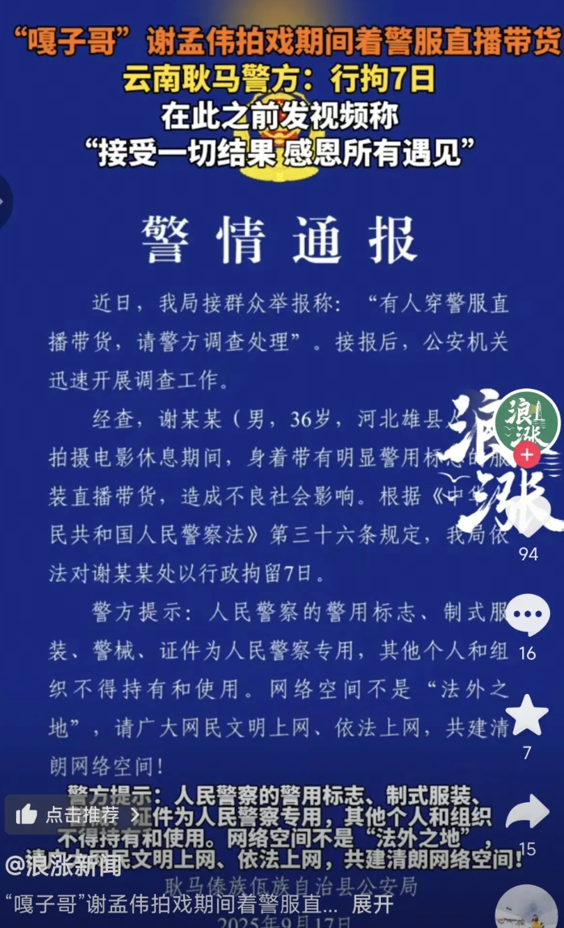但是天狂有雨,人狂有祸,嘎子可能是真看反诈老陈不爽,竟然穿起警服直播,甚至还说是省厅项目,结果也不出所料,喜提7天包吃包住套餐。