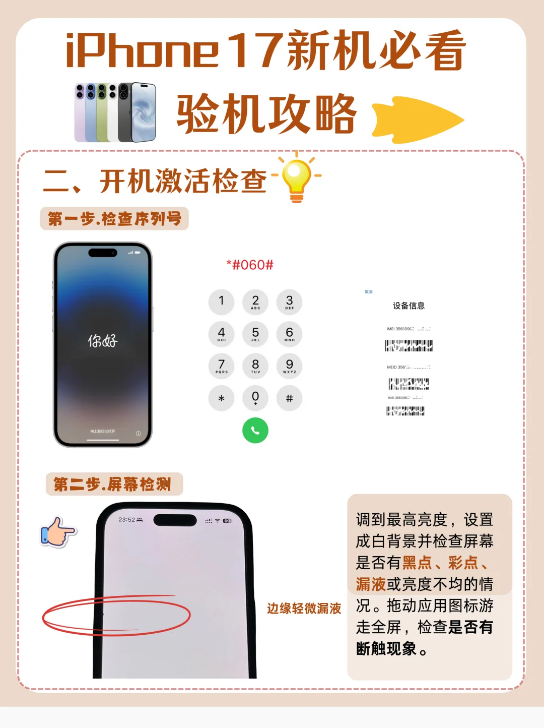 新机必看验机指南来啦❗️建议每个宝子都要验机,因为会有小概率开箱损的可能,比如一点点小磕碰划痕和摄像头灰尘[失望R]毕竟是流水线生产的难免会有瑕疵 所以为了避免买到瑕疵的手机不能退换!咱们一定要留好证据! 一定要录视频!! [哇R]快分享给你一起抢首发的好姐妹,等19号收到货一起验机!!