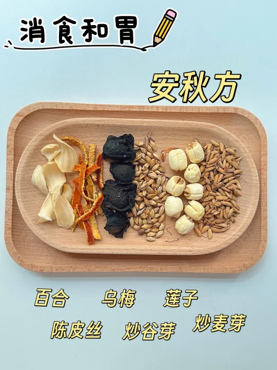 🍵材料:炒麦芽+炒谷芽+莲子+百合+乌梅+陈皮丝