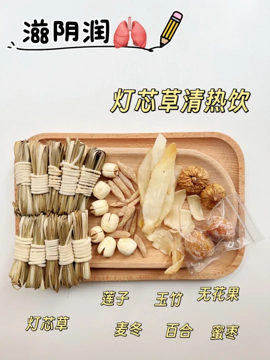 🪷材料:灯芯草+百合+莲子+玉竹+蜜枣+麦冬+无花果