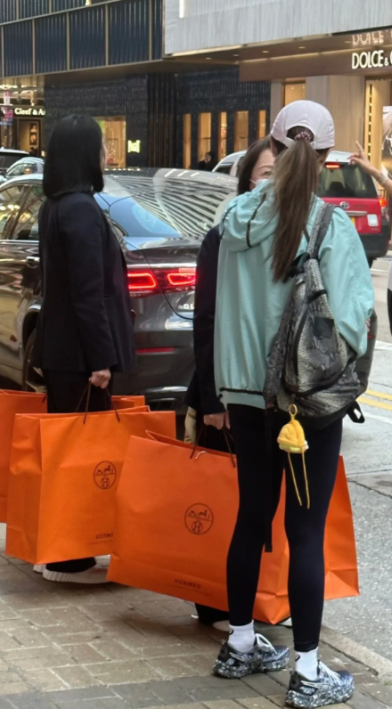 有网友在香港偶遇李嘉欣扫货爱马仕,她身着休闲装,由两位店员提四大袋跟随,据说单只