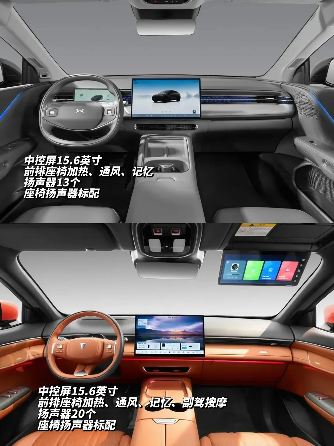 ✅中控屏同为15.6英寸,座椅都有加热,通风,记忆等功能。但是S07要比G6多了零重力座椅和副驾按摩,扬声器也要多7个,在舒适性配置和氛围感方面S07体验感要更好。