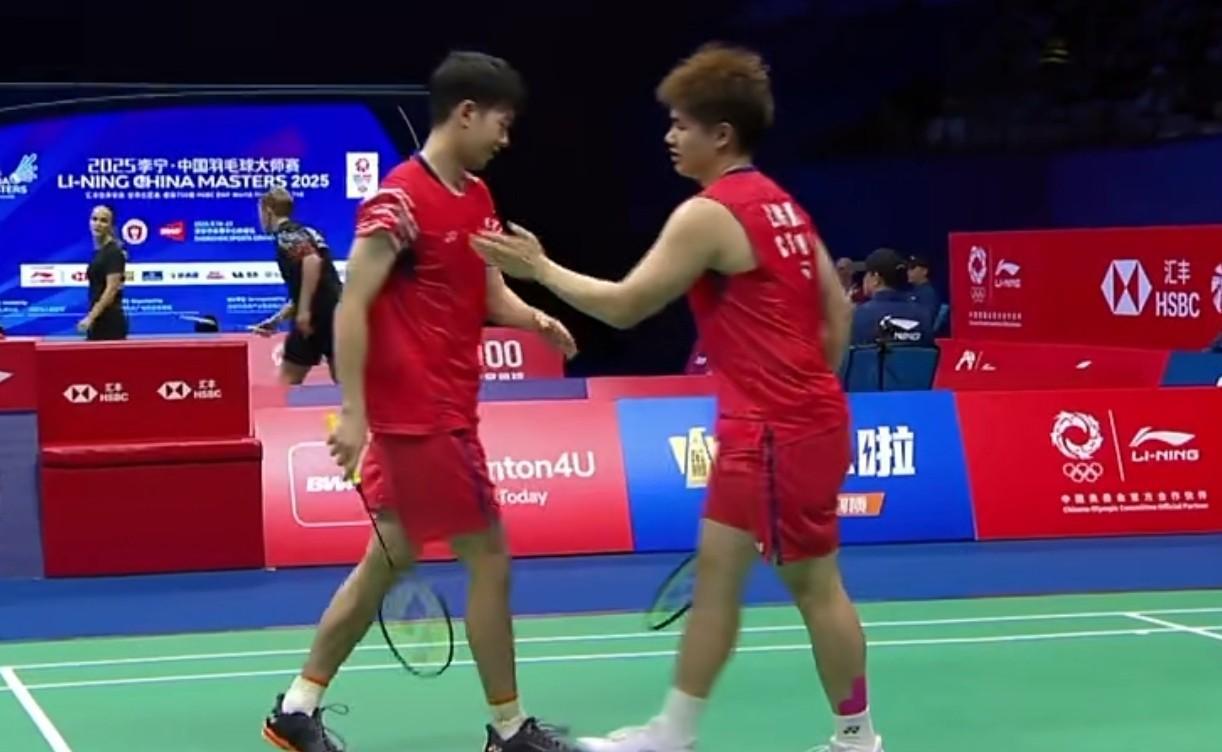 2025年中国羽毛球大师赛,男双1/8赛梁伟铿/王昶21-16,15-21,18-21被阿尔菲安/菲里克逆转,梁伟铿/王昶遭遇对阿尔菲安/菲里克的两连败,双菲组合下一轮对阵吴世飞/伊祖丁。