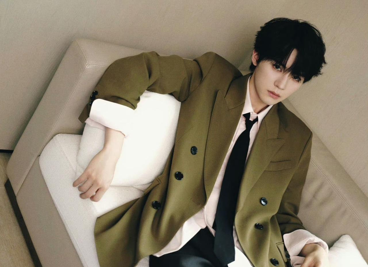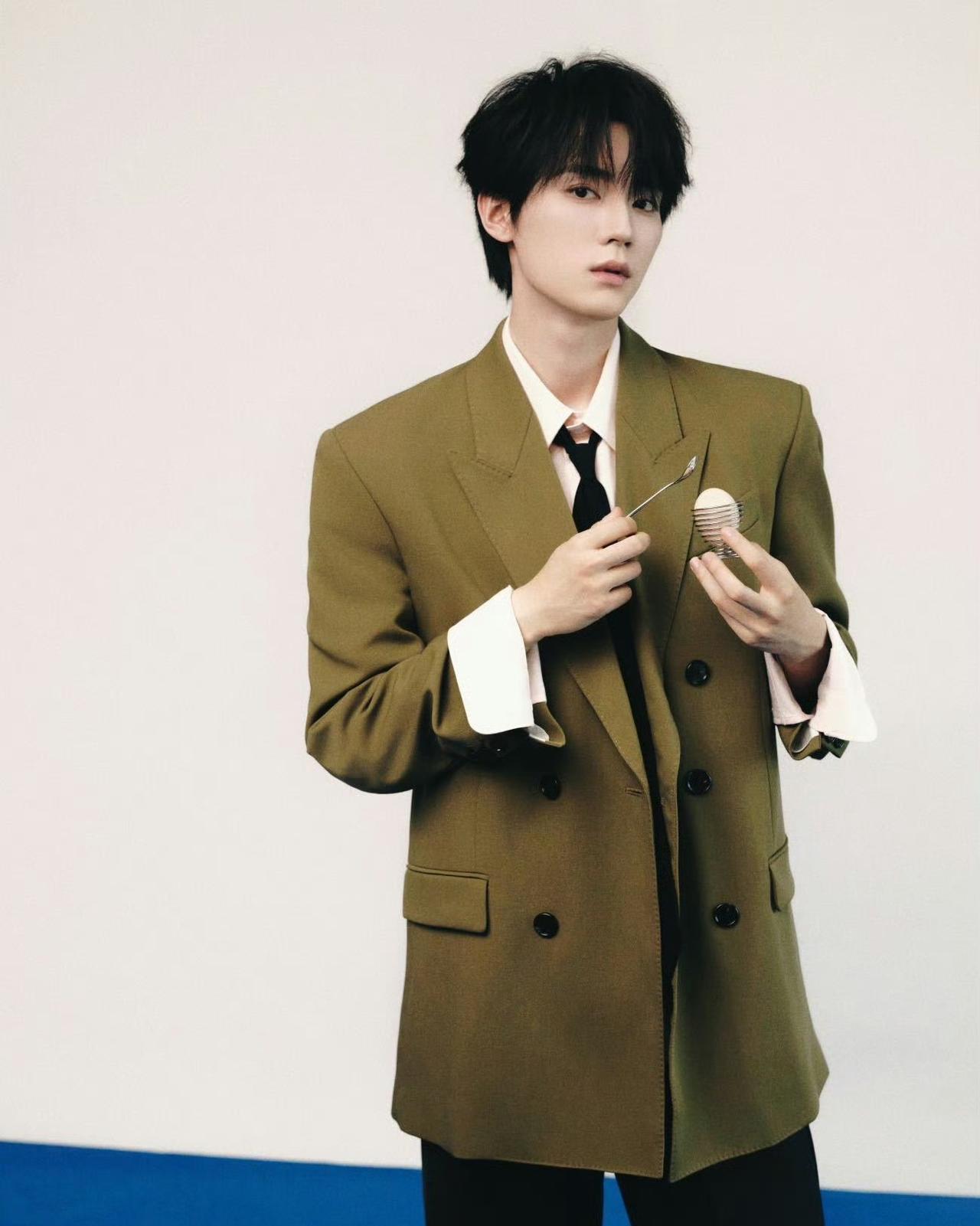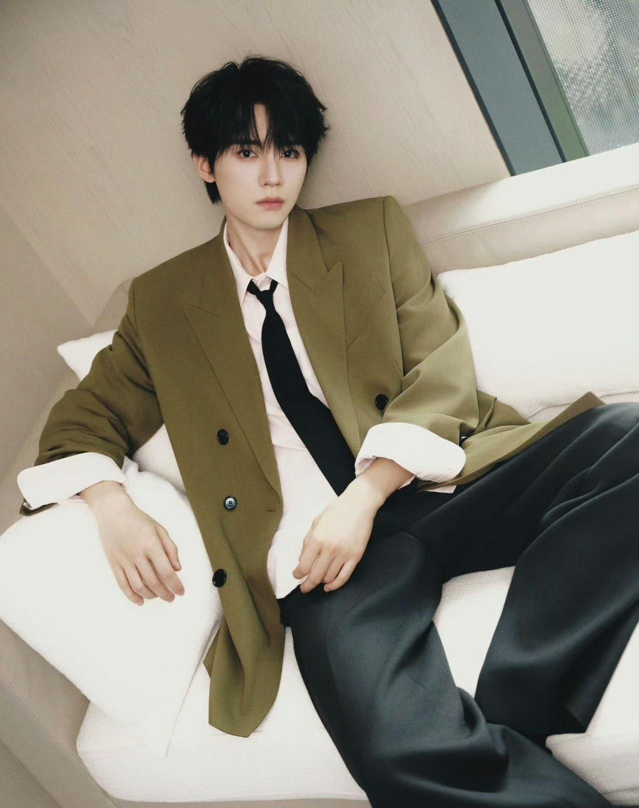周翊然橄榄绿西装 周翊然现身成都活动造型,橄榄绿休闲西装,内搭裸粉色衬衫与领带搭
