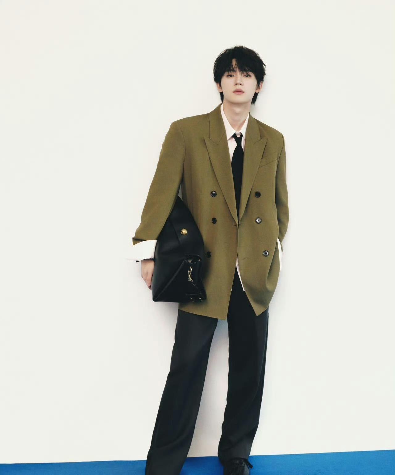 周翊然橄榄绿西装 周翊然现身成都活动造型,橄榄绿休闲西装,内搭裸粉色衬衫与领带搭配黑色西裤。
