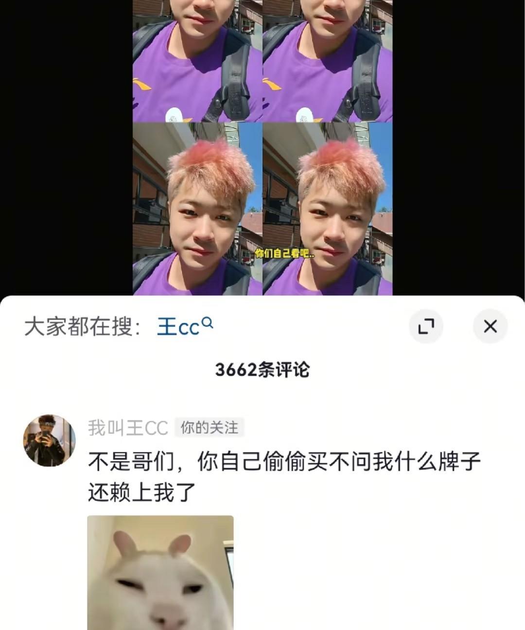 草莓熊被王CC“递刀子”头发“破相”? 曹巍发了一条视频,说他的600万的项目出问题了! 当他摘下帽子的时候,哎妈呀怎么又去染头了吗? 原来是跟王CC俩人没嘀咕明白,咱也不到是草莓熊没听王CC的,还是王CC给推荐错了! 反正已成这样,还好没洗成绿的哈哈哈! 那边王楚钦BOSS忙着拍奔驰商务,这边俩人开始了内斗,这不染成了头哥大G的么,哈哈哈![偷笑]
