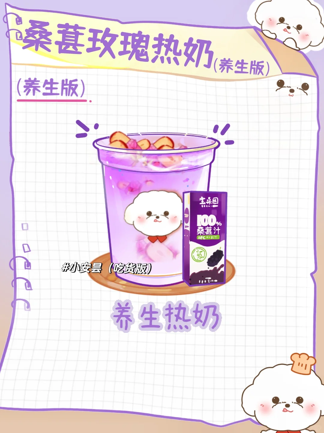 桑葚玫瑰热奶(养生版) 清新的桑葚和玫瑰花的香气搭配上温暖的牛奶 暖暖的心,刚刚好🌹☀️ 🥣材料准备 5颗红枣➕桑葚汁 ➕牛奶➕纯净水➕几朵玫瑰➕冰糖 🥣制作步骤 1⃣️将红枣去核,加入锅中,再加入玫瑰! 2⃣️加入600ml纯净水!开火煮开 3⃣️煮沸之后就关火,加入桑葚汁,牛奶和冰糖搅拌均匀就完成啦! 给你一天的能量。在家也能轻松享受奶茶店🥤级别的饮品哦!☕️✨温暖一整个冬!