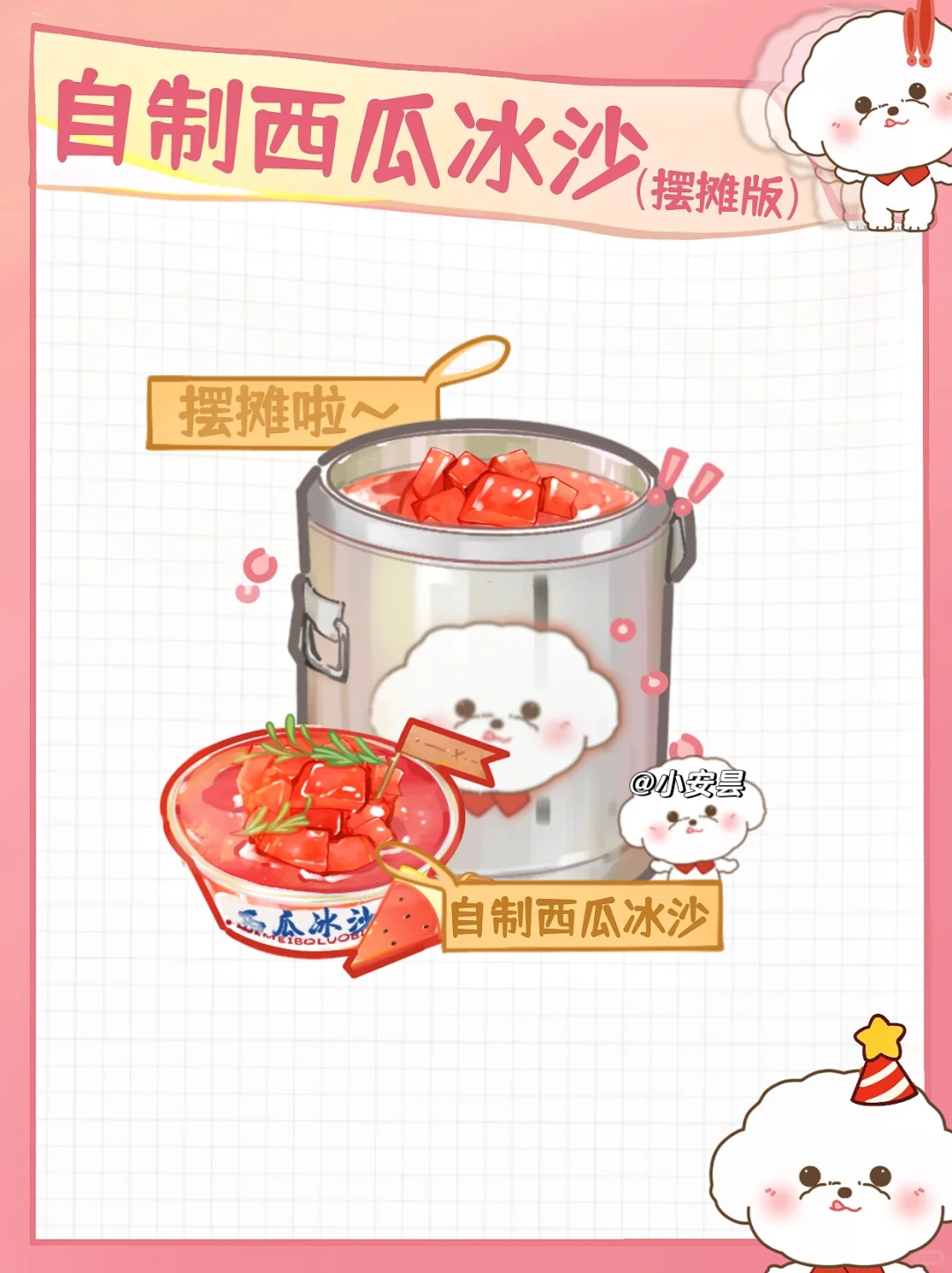 🍉自制西瓜冰沙(摆摊版) 凉爽一夏,西瓜大作!🍉 西瓜吃不完?别急! 来试试自制西瓜冰沙!清甜滑爽,解暑利器!简单DIY,家中就能搞定! 还可以摆摊哦,一会儿就卖空空!😋💦 🥣材料准备 400克冻西瓜➕60克奶粉 ➕20克炼乳 🥣制作步骤 1⃣️首先将西瓜去皮切块,放进冰箱冷冻一晚! 2⃣️将400克冻西瓜,60克奶粉,20克炼乳加入破壁机! 3⃣️破壁机打成冰沙,放入碗中,面上放上一些西瓜块,好吃解暑的西瓜冰沙就完成✅