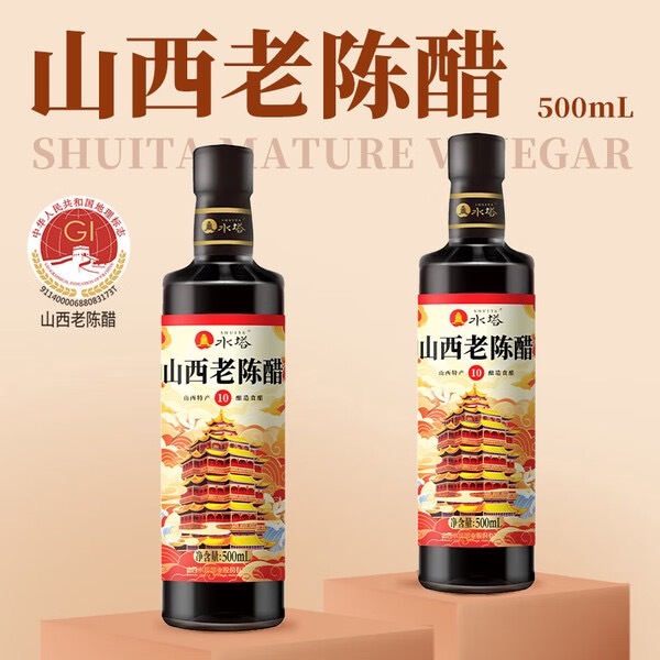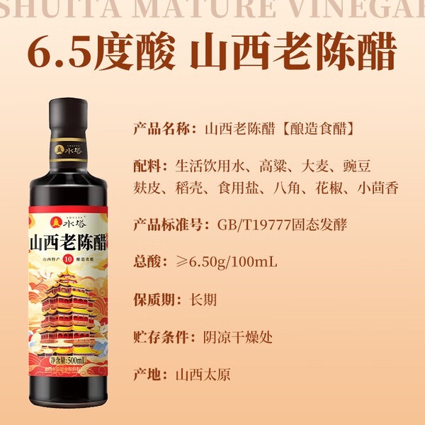 【JD到手价27.8】水塔山西老陈醋6.5度500ml10陈酿【19777标