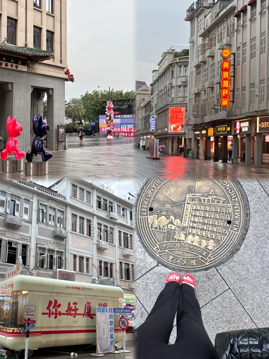 最近开始为中秋做布置准备了 整条街节日氛围满~ 建议从📍鹭江宾馆开始逛 这里是中山路的正入口处 一眼就可以看到中山路的地标(P2、8) 第二站打卡📍大榕树(P3、4、7) 往鹭江宾馆直行往前走几百米就可以看到了,沿路刚好可以欣赏中山路骑楼特色建筑。 第三站打卡📍中华城(P5、6) 对面就可以看到“爱在厦门”的牌子,很好拍! 全程逛拍大约一个小时,好逛不累 秋天的中山路还是很好逛的呦~ 逛累了可以打卡厦门特色小吃沙茶面和薄饼 特色饮品推荐KOI,选择手作店或者定制店