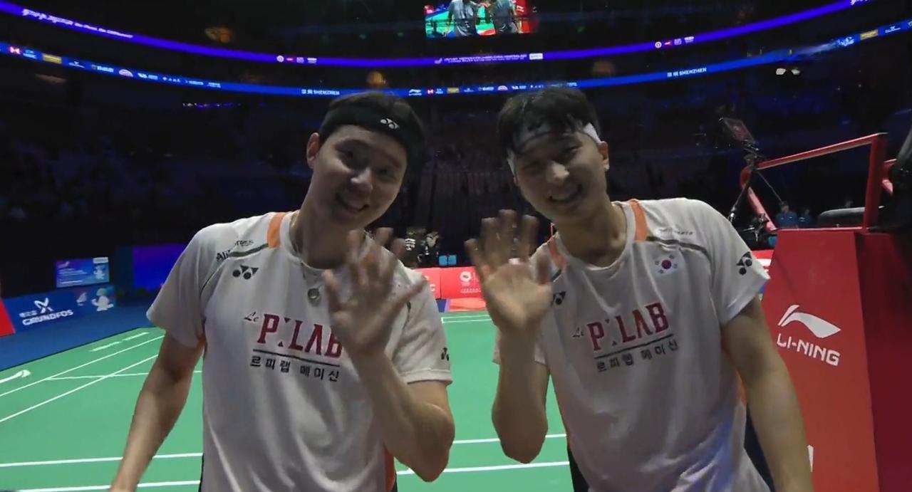 2025年中国羽毛球大师赛男双半决赛,金元浩/徐承宰21-13,21-17战胜阿
