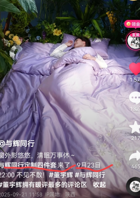 熟悉宇辉的朋友都知道, 宇辉直播的时间, 一般都是晚上8点。 那么, 9月23日那天晚上8点, 宇辉是不是在《兰知春序》访谈完电影, 10点再去与辉同行卖4件套呢? 我脑子里仿佛都浮现出 宇辉从一个直播间 进入另一个直播间的忙碌身影了呢!
