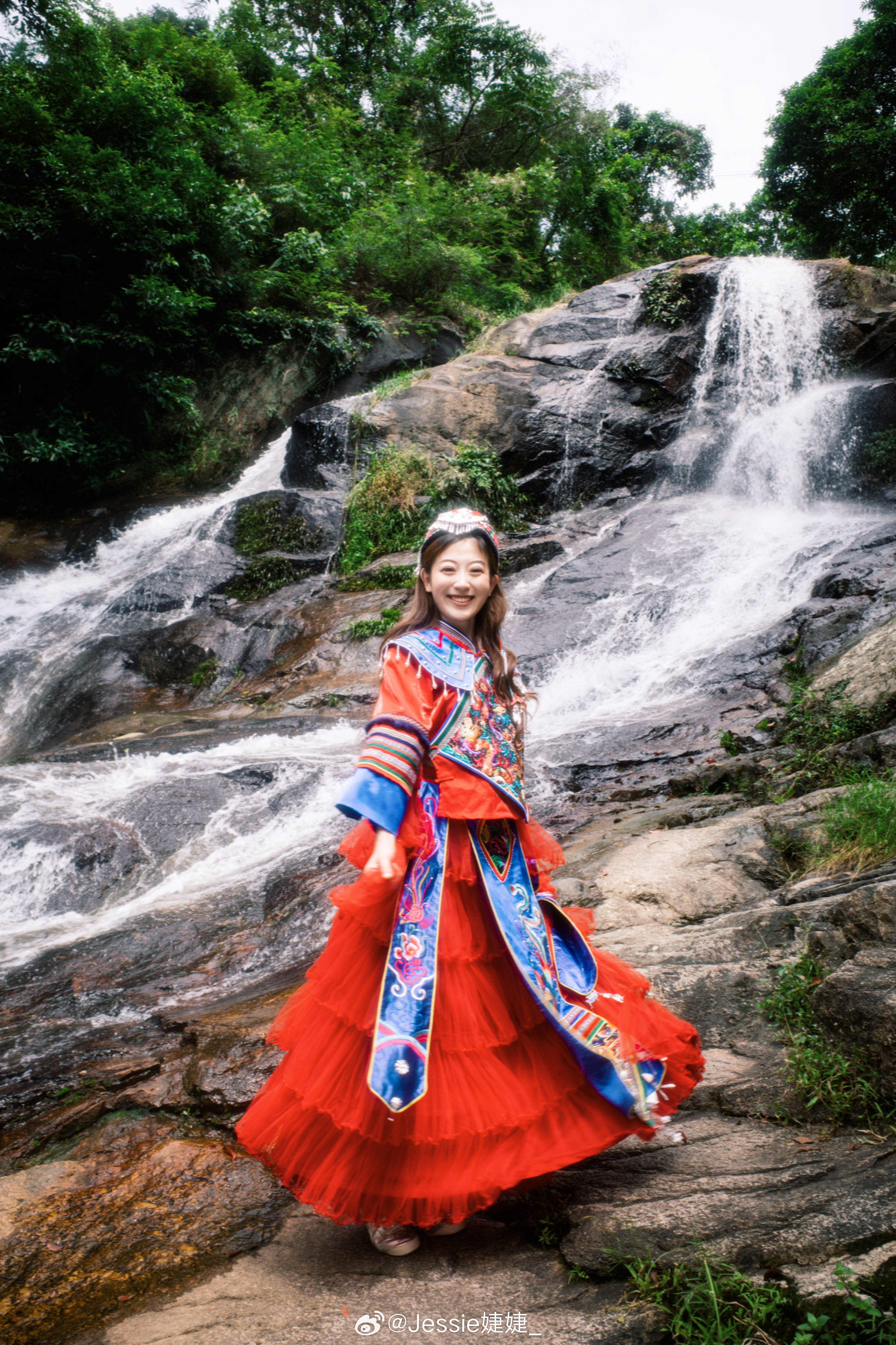 最喜欢在瀑布前的这张照片 但是谁能想到拍视频的时候差点差点滑下去了[泪][泪]