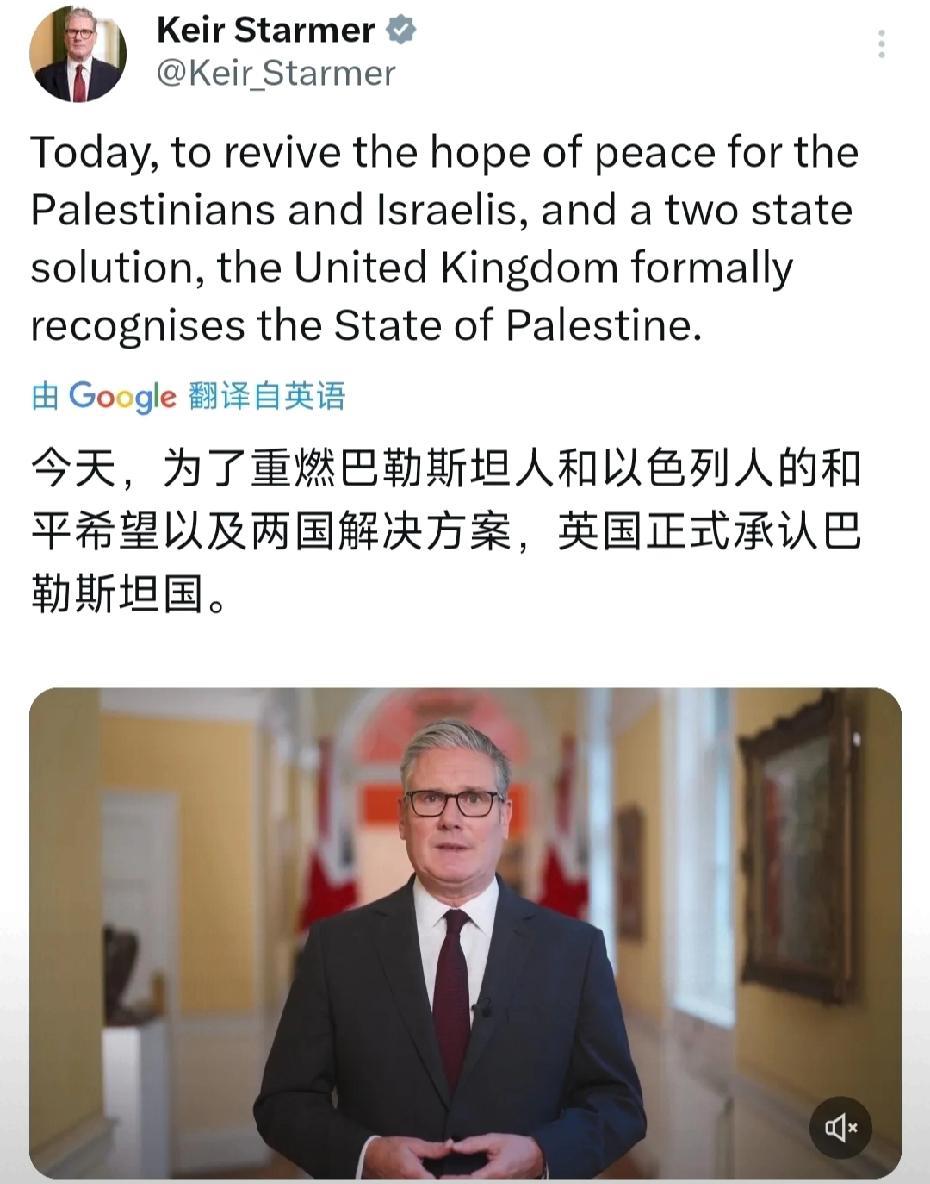 一夜之间,3国承认巴勒斯坦国,内塔尼亚胡破防:将赴美搬救兵 一觉醒来,来自英国、加拿大、澳大利亚消息显示,它们已正式承认巴勒斯坦国,综合早前法国、比利时、西班牙媒体消息,22日,在纽约联合国大会上将宣布承认巴勒斯坦国的信息看,西方阵营在加沙问题上已正式选边站队,这对于加沙人来说,是光照进来的日子,对于文明来说,是一次行动的诠释…… 有意思的是,以总理内塔尼亚胡在3国发布声明后说,他将启程访美,与美紧急商讨对策。 于此同时,他再次警告:“绝不会有巴勒斯坦国”,会在访美后对这些承认巴勒斯坦国的国家作出回应。 评一句吧:太过狭隘,没有登高望远的智慧,看不清大势,G7成员也好,盎格鲁撒克逊人一脉也罢,现在已然站在美国的对立面,川普被孤立明显,难道美国会为以与所有人针锋相对吗? 最后的结果可能是,内塔尼亚胡是内塔尼亚胡,以色列是以色列,而美国已不再是那个美国……