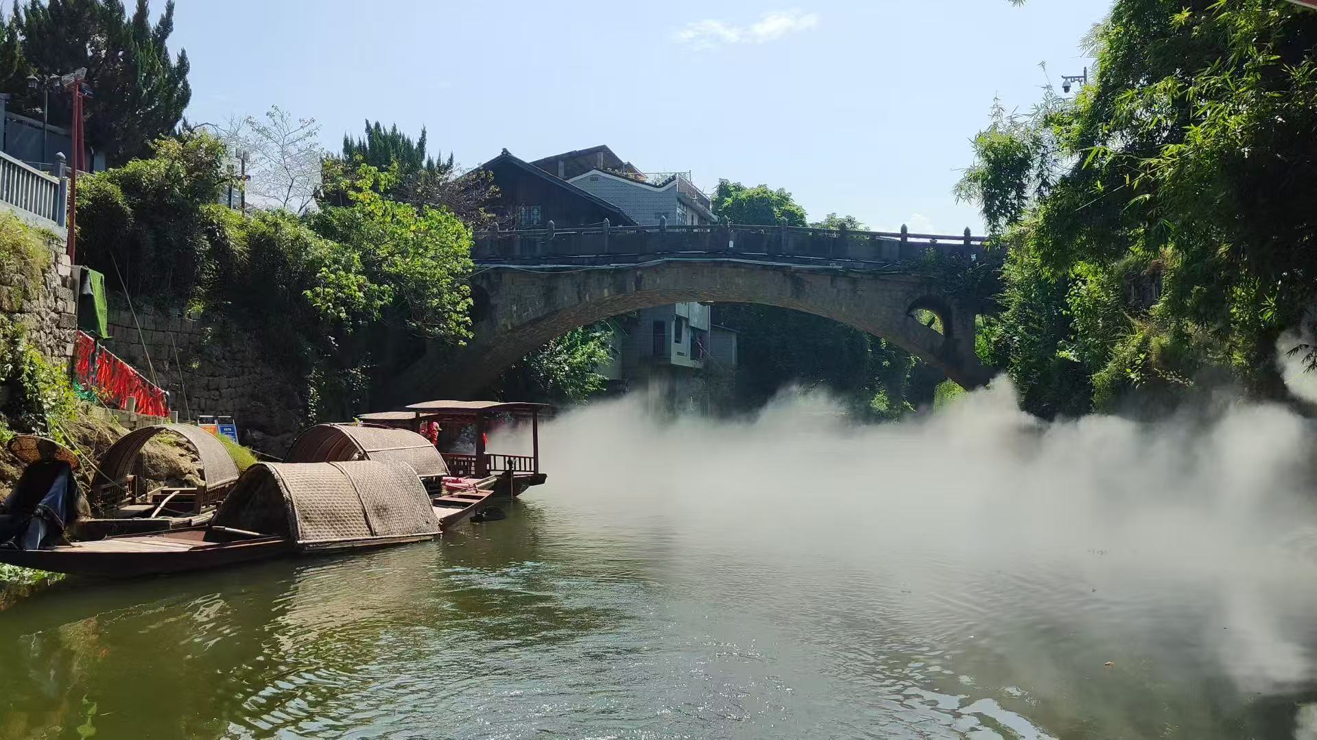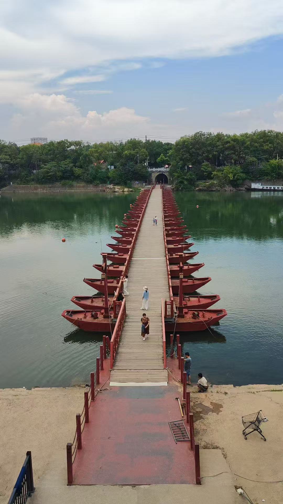 🌉霞客渡浮桥:由20艘木船串联而成,走在上面晃晃悠悠,傍晚时分,看晚霞将潇水染透,美轮美奂。周末还有“渔舟唱晚”实景表演可以免费观看。