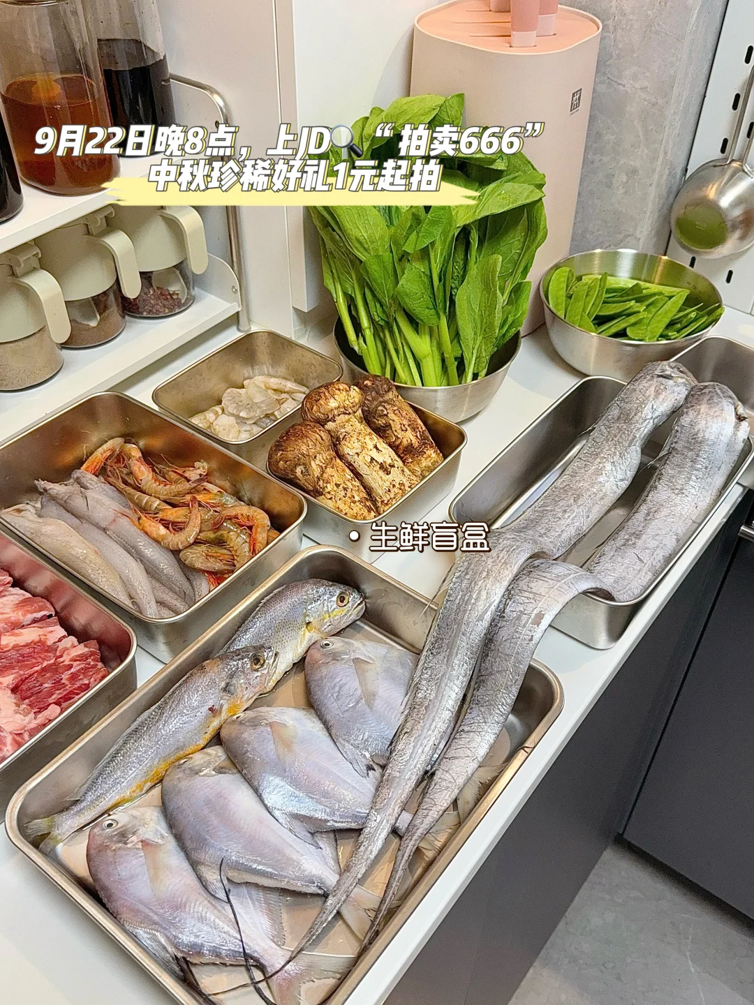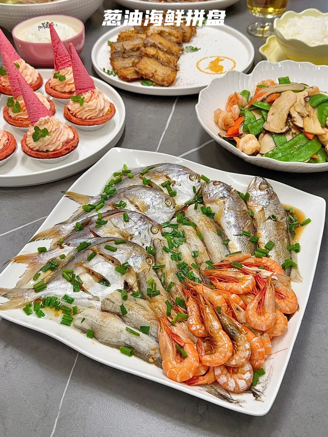 [集美R] 压轴菜的秘诀就是食材好!今天吃的葱油海鲜拼盘和干炸带鱼,就是用在京东拍卖拍到的舟山开海京东第一网海鲜做的,有东海带鱼、海捕小黄鱼、龙头鱼、鲳鱼、红头虾好多种。食材非常不错,跟菜市场那种冻得邦邦硬的完全不是一回事儿,简单蒸一下就很鲜美。