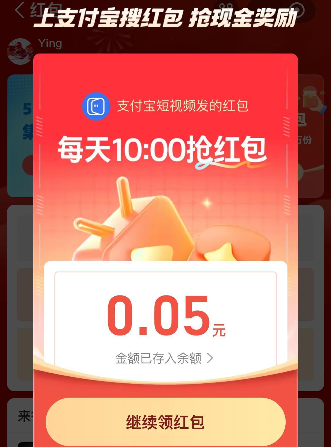 支付宝“整点红包”,在中午将近2点的时候,硬生生被我抢到了[烟花] 不多,5分钱