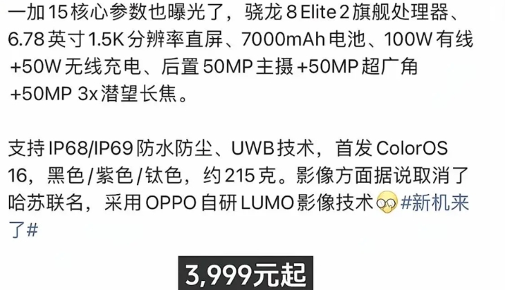 这下一加15真成低人二等了,相机没哈苏,真我GT8pro 反而而联名了。 一加15感觉不上不下,不如独立出去自己搞算了,3999可以和小米17pro竞争一下。