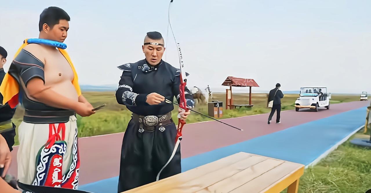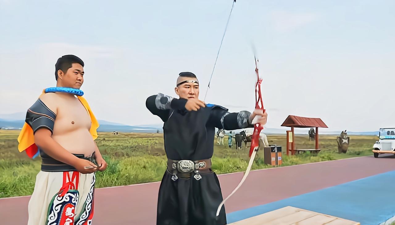 馆长骑着内蒙古高头大马有种“回家”的感觉,像古代蒙古大将军!而他射箭时站在内蒙古