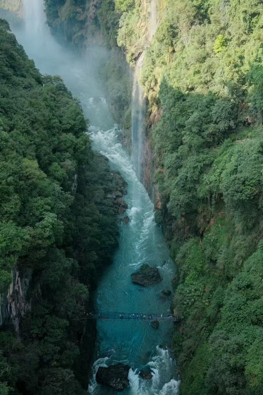 ✅万马奔腾瀑布:10多条瀑布一同倾泻而下,水雾弥漫,宛如仙境,在桥上可以拍到全景。