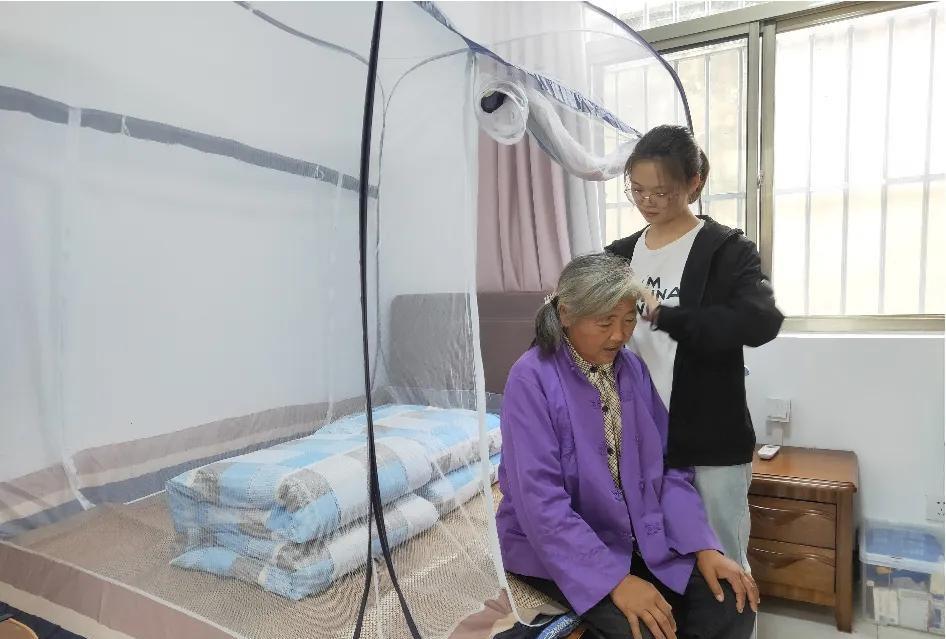 江苏泰州,18岁女生带着奶奶一起上大学,学校为她配备了专门宿舍,所有东西一应俱全