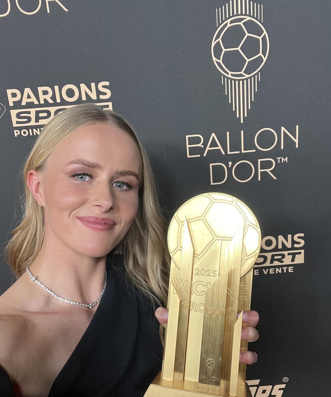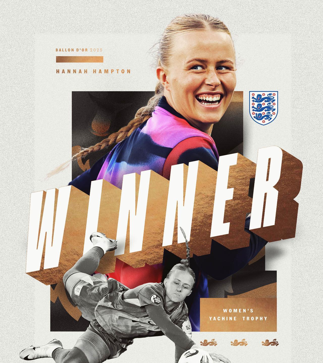 伟大的金手套!祝贺切尔西女足英格兰门将汉娜·汉普顿荣获女足雅辛奖! 汉娜获奖实至名归,2024-25赛季她随切尔西包揽英格兰女足国内三大杯(联赛、足总杯、联赛杯),个人获得女超金手套奖,国家队随队卫冕女足欧洲杯冠军,当选欧洲杯最佳门将,正是她半决赛、决赛连续神扑保证了英格兰女足夺冠。 特别说明一下,这位24岁,从小在西班牙踢球的年轻门将其实是一位视力障碍患者,你没有看错,汉娜有先天性斜视,12岁前已经进行了三次手术还没有完全改善,年少时她的队友经常开玩笑地让她帮忙倒饮料,因为她几乎每次都会倒在杯子外面...... 无法想象一个斜视患者付出了多大努力才能实现自己的足球梦想,站在球门线上守护自己的球队,她和其他门将的较量完全不在一个层面!球迷们都应该向这位伟大的门将致敬! #足球##金球奖##dou为球狂##汉娜·汉普顿##足球狂热分享##女足#