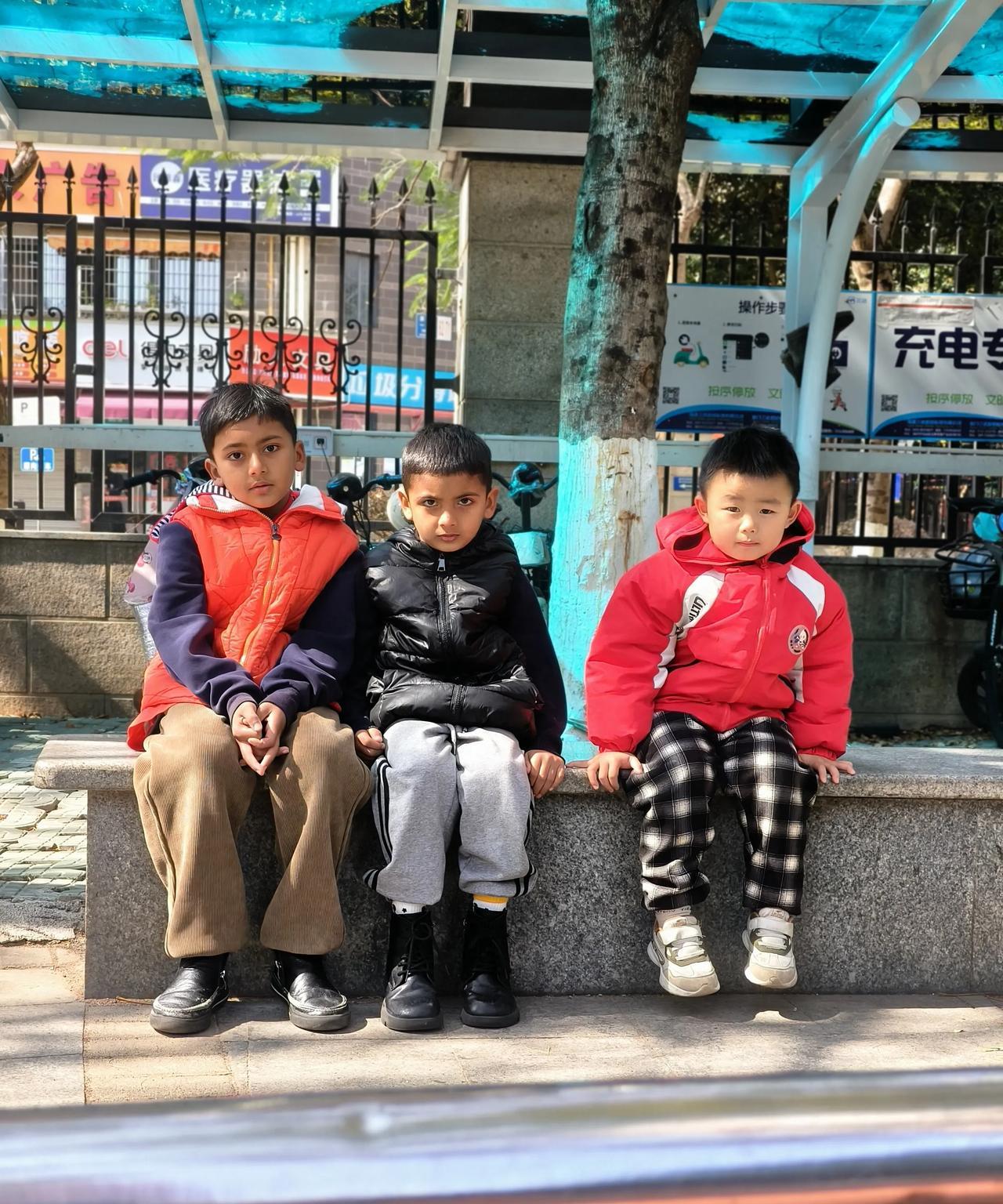 平生第一次与外国孩子对话,也是第一次与外国人说话。 春节,在厦门市集美区滨水小区的一个社区公园里,看见一高一矮的两个男孩。 是兄弟俩,哥哥十一二岁,弟弟八九岁的样子,一剎看有些像新疆人。 我也和我哥、侄女,还有小外孙一起在公园里闲逛。 我对侄女说,你猜这两个小兄弟是哪儿的人? 侄女说应该是外国人,但我们有好一会都没有去问,玩了一会儿我实在忍不住想去创作一点故事。 于是我就去和那两兄弟说话,我问他俩:你们是哪里人? 哥哥用汉语回答说:我们是巴基斯坦的。 他用手一指小男孩说:这是我弟弟。 一对话,我好惊讶哥哥的汉语能力,说得一点没有外国腔,完全中国人的语音,甚至比多数广东人的普通话好的无数倍。 我又问:你们来了多长时间? 哥哥说:到厦门四个多月了,原来在青海也住了几个月。 我好奇的问:你的汉语怎么说得这么好? 男孩回答说:我们在青海上的学,在那儿学的汉语。 我更奇怪了,也就上了几个月的学,在厦门也才几个月,前后加起来也就一年多时间吧,怎么把一门外语说得这么好呢? 让我想起我学英语,中学学了三年,不说考试不及格,就算一些简单的生活用语也说不来,后来成了中考时最拉分的一门课。 也想起现在学校为什么要从小学就开始学英语了,大概是从小学习外语容易学好的原因吧。 想起我侄儿在江门读了两年幼儿园,一口广东话说得顺顺溜溜,而我们在广东几十年了,竟然还不会说广东话,只听得懂一些。 为什么从小学外语容易学呢,是什么原因? 经过一番交谈后,我说给他们兄弟俩照张相,看到一旁的小外孙,我又叫小外孙一起和他们照一张合影,来一张中巴小朋友的美好留念。 没想这兄弟俩一点也不生疏,小外孙也欣然顺从,于是就有了下面这两张中巴小朋友合影的照片。 抛开政治不说的话,世界人民走在一起,都会创造出一个美好亲切温馨的氛围。