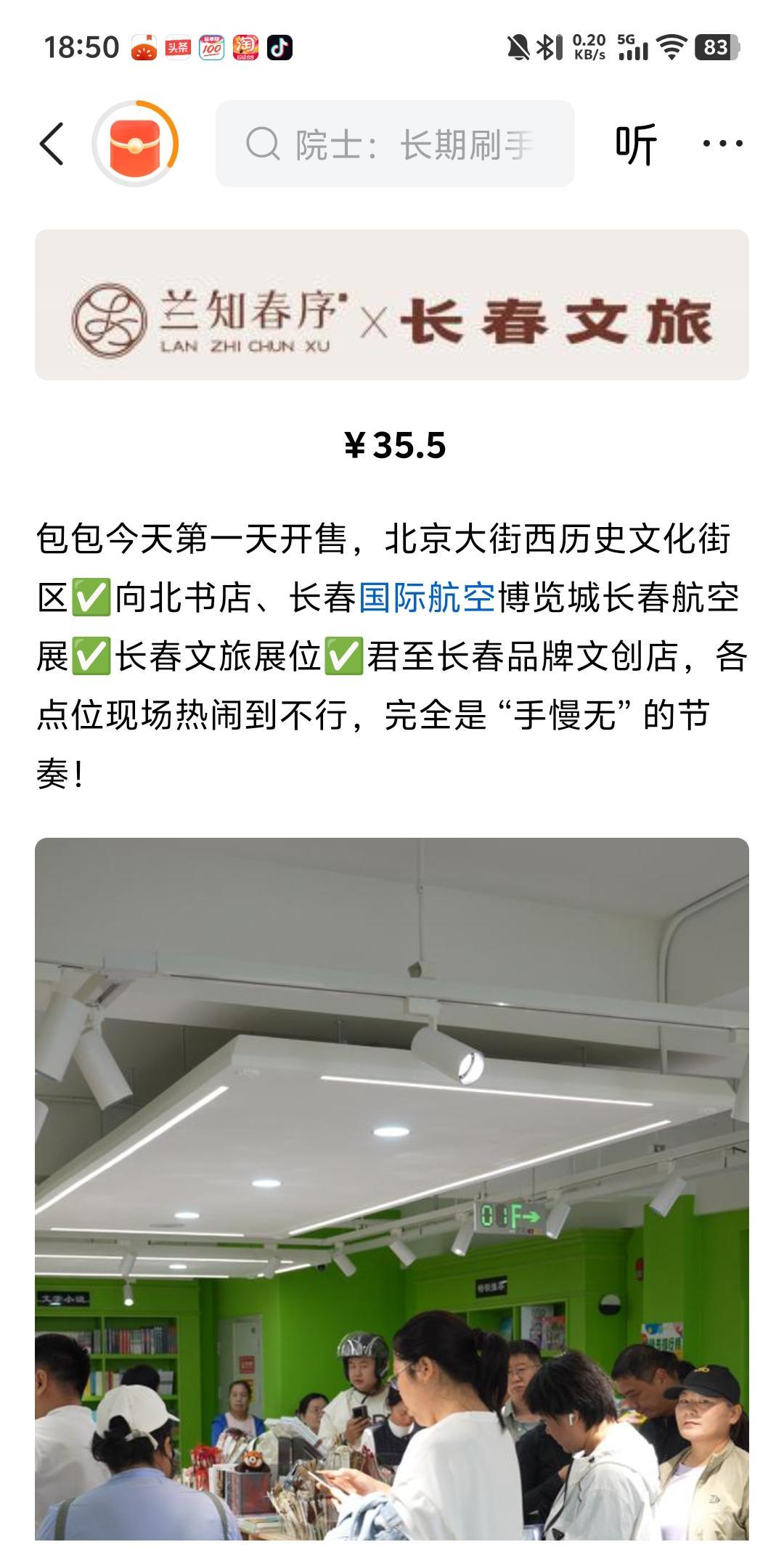 与辉同行与长春文旅联名的帆布包 开售即爆款,这款包是线下销售 35.5元,好多朋