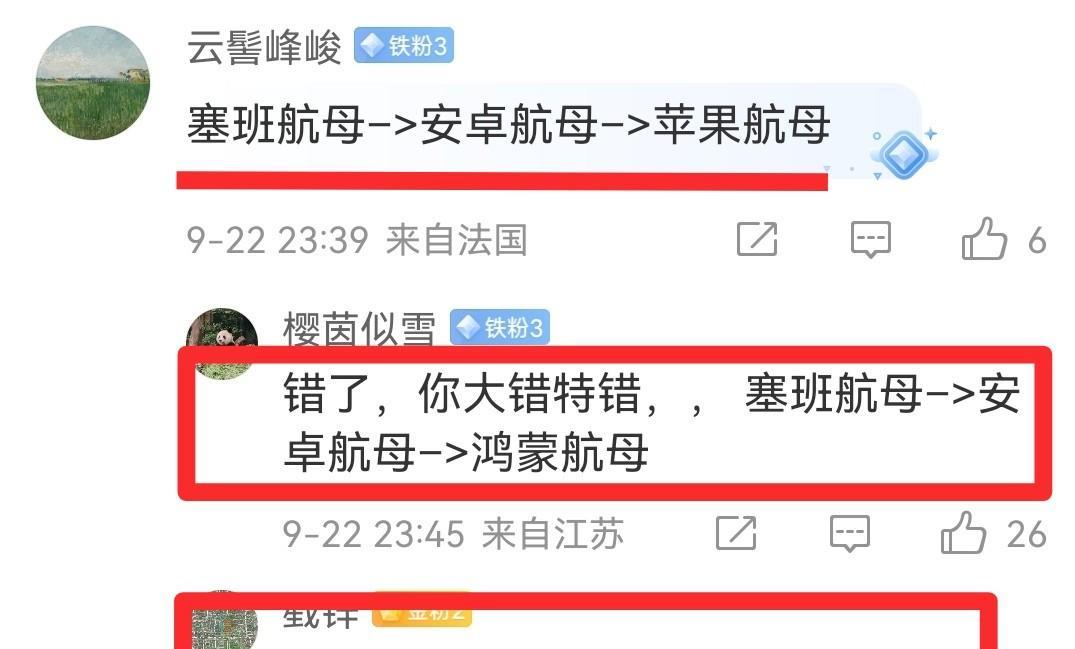 无法比喻。说白了,就是一代更比一代强呗…… 有网友比喻说(图二),这是“塞班-安卓-鸿蒙”般的进化史;也有网友说,这是“内燃机车-高速列车-磁悬浮列车”般的进化史…… 总之,目前,福建舰航母上的舰载机可以满油满载起飞,随时随地战斗。 未来,三艘航母是不够的…… 某专家也说了。未来航母发展方向是核动力+电磁弹射…… 专家,这还用你说嘛。不出意外的话,核动力航母已经安排上了……