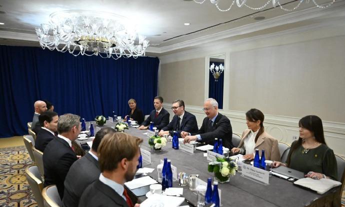 在联合国大会上,武契奇和国务卿鲁比奥会见 画面中,武契奇和鲁比奥看起来都很开心,