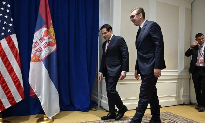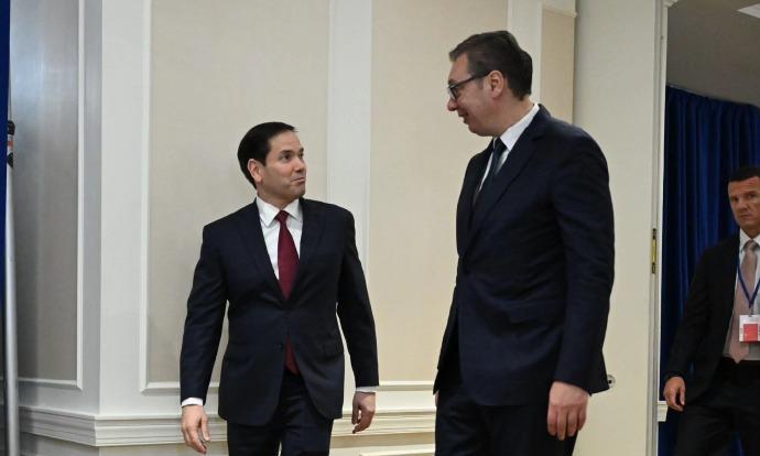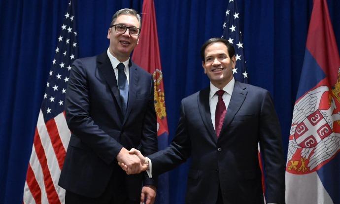 在联合国大会上,武契奇和国务卿鲁比奥会见 画面中,武契奇和鲁比奥看起来都很开心,两人边握手边合影留念,由于两人身高差悬殊,鲁比奥就像一位小矮人一样。和武契奇说话都要昂着脑袋,尤其是鲁比奥走路的时候回头看武契奇的时候画面非常搞笑,和武契奇比起来鲁比奥真的不像一位国务卿。 当然了这次武契奇和鲁比奥代表团谈论的主要也是经济合作和以及共同的安全挑战。当然了武契奇也谈论了美对塞尔维亚的关税问题,以及还讨论了新投资的可能性、能源和新技术领域的合作以及我们战略对话机制所带来的前景。 虽然武契奇和鲁比奥谈论了这些,但是最后结果如何肯定还是要老大点头确认。