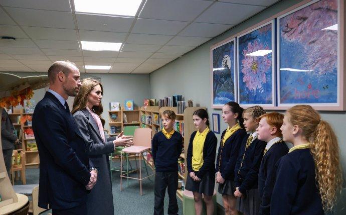 凯特王妃系粉色丝巾太漂亮了。 据悉在9月22日,凯特王妃和老公威廉王子去了一个小学,纪念去年7月份在恶性持刀袭击事件中不幸遇害的三名小学生。 画面中凯特王妃穿的是一件灰色的风衣,由于灰色比较深沉,所以凯特王妃还佩戴一条粉色的丝巾在脖子里,瞬间凯特王妃的气质立马提高了很多。本来凯特王妃身材都很高,穿上风衣之后更加有范。再搭配粉色的衬衫和丝巾真的是太绝美了。 在现场凯特王妃还蹲着和小朋友聊天沟通,非常接地气随和。