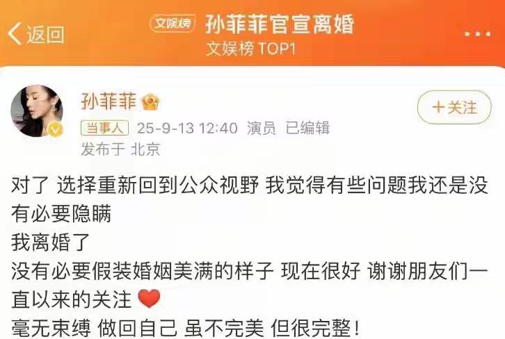 孙菲菲官宣离婚后,又在网络上和前夫“开撕”,原因是前夫发朋友圈诋毁她害死公公。