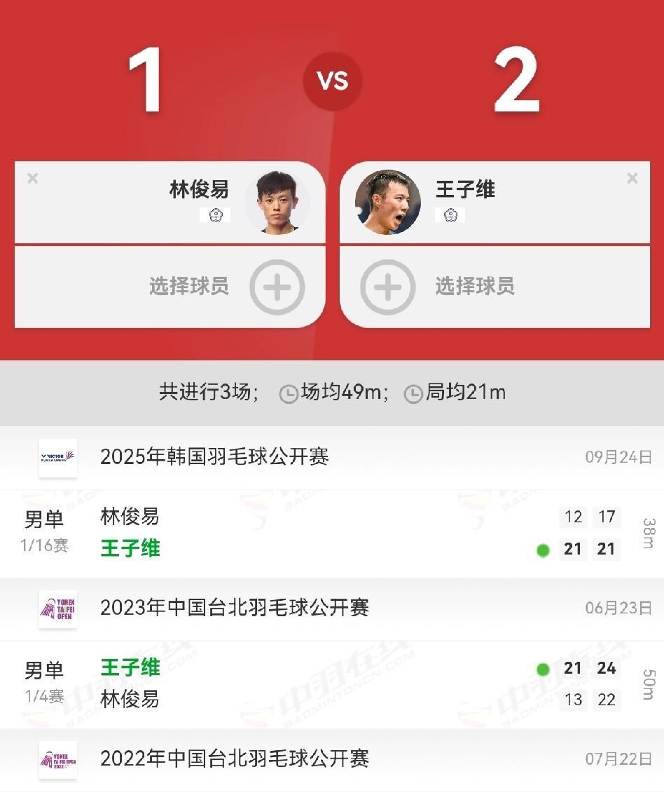2025年韩国羽毛球公开赛男单1/16赛,林俊易12-21,17-21不敌王子维,止步首轮。