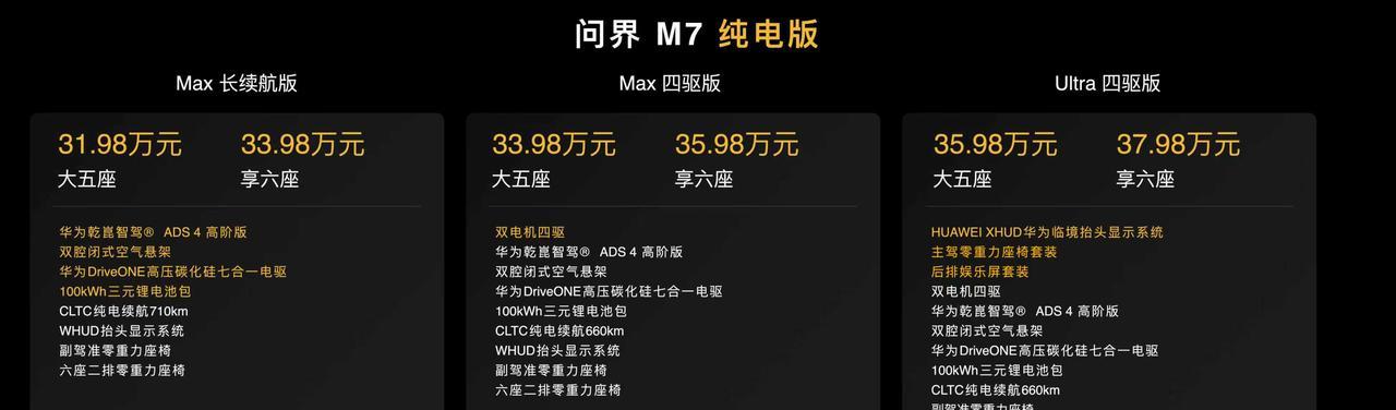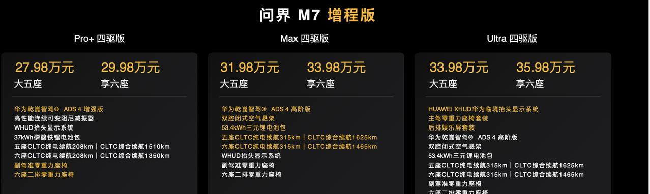 全新#问界M7#正式上市,12款车型售价27.98-37.98万元。 作为换代