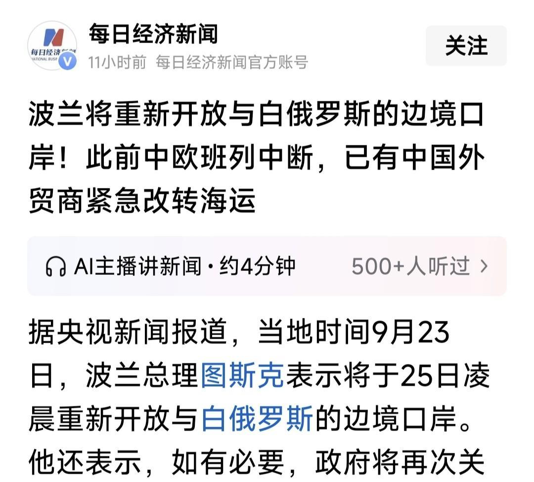中欧班列波白通道,关闭十多天终于复通!这是一个好消息,既有利于中国,也有利于波白