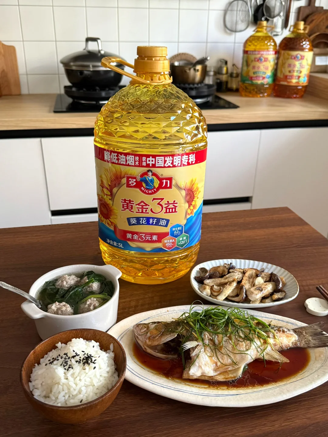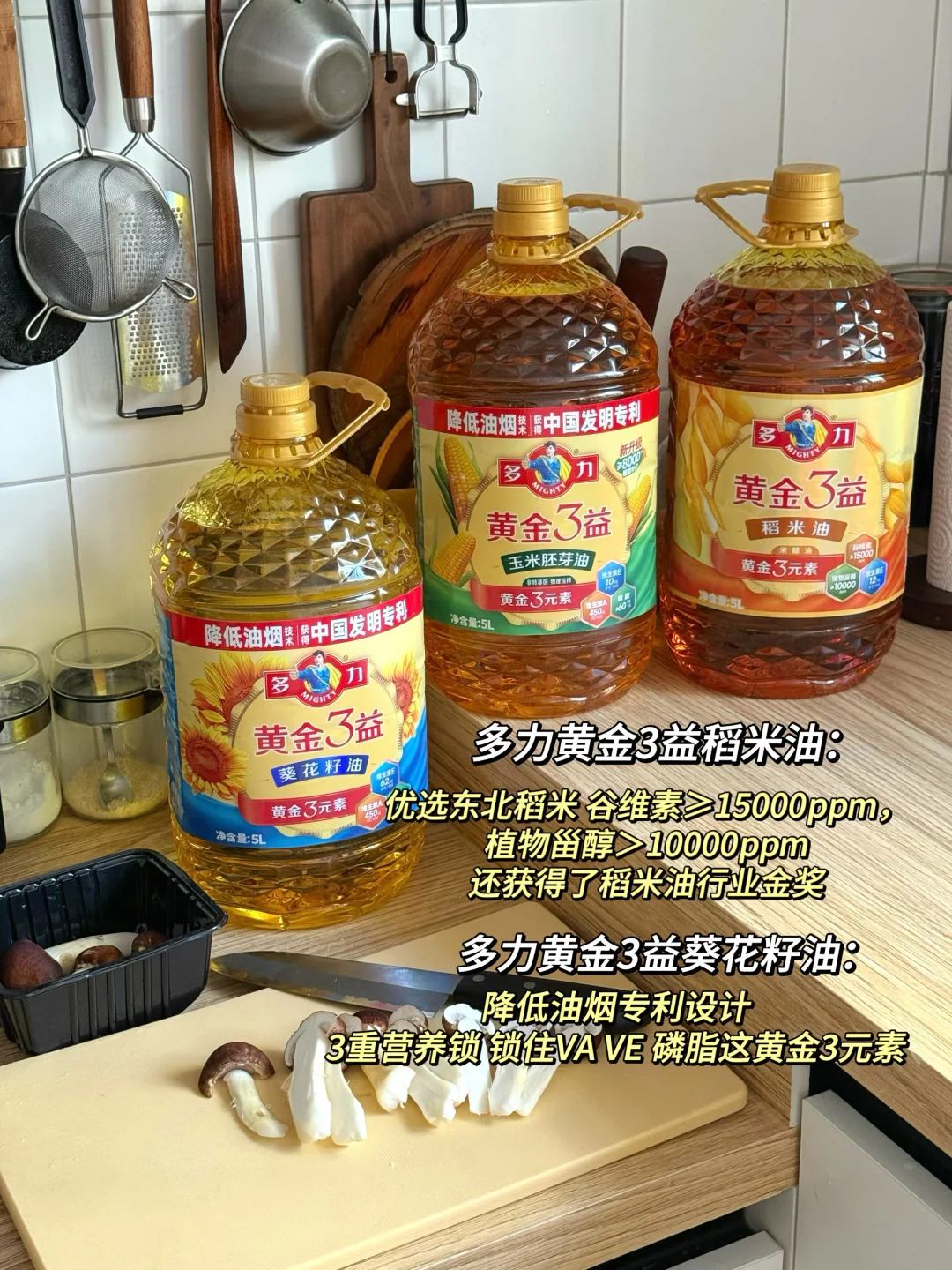 我还入手了它家同系列的黄金3益玉米胚芽油和稻米油,玉米油无论煎炒凉拌都很适合,稻米油优选东北优质稻米,富含植物甾醇、谷维素,并且含量也在行业中遥遥领先,每一滴都是精华。
