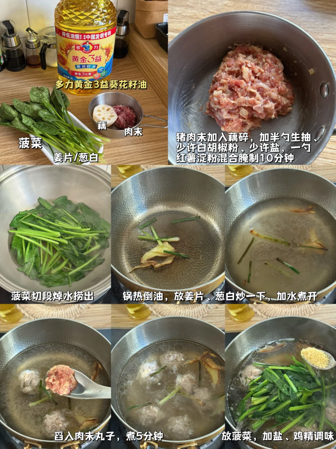 入秋之后,皮肤和嘴唇总是容易发干,这时候太需要一碗温润的汤了。藕丁清甜,肉丸鲜香,再加上菠菜,喝下去整个人都润润的。