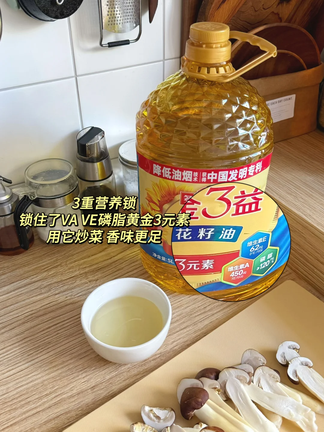 它清新不腻,质地柔润,并且有降低油烟专利技术,烟点高、油烟也少。它不仅是烹饪好帮手,更是一瓶“润养标杆”。