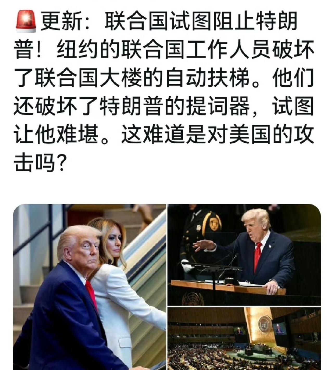 最新透露,特朗普在联合国经历的自动扶梯坏、提词器是人为的,还是纽约的联合国工作人