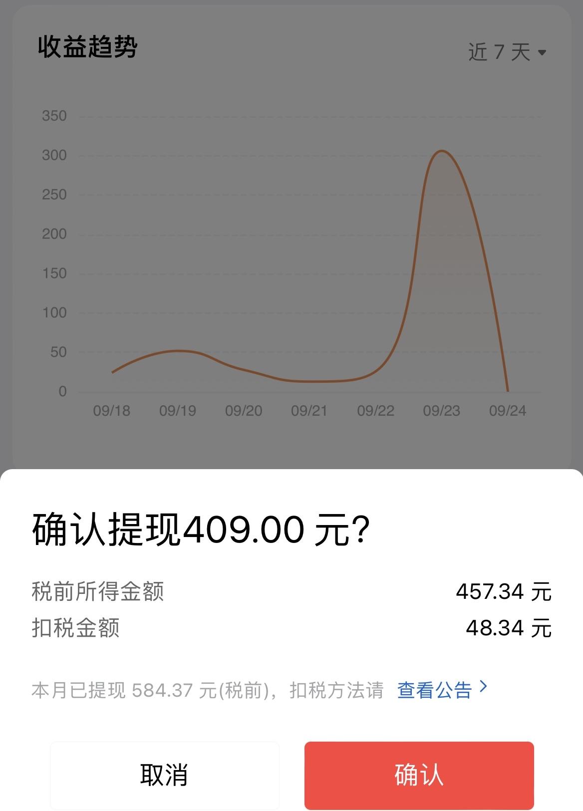 又到了头条收益提现的日子,没想到这次要扣 48 块钱的税了,这也意味着这个累计收益提现超过 800 元! 自从 6 月份回归头条创作以来,坚持到现在也过去 4 个月时间了,我更换了写作的方向,垂直在基金投资理财领域! 发文上也做了调整,以前是写文章为主,现在是以微头条为主,多的时候我一天写 20 篇微头条,除了保证每天更新,数量上我也尽量保证每天 10 篇! 就这样持续的创作,坚持了 4 个月! 我大概估算了一下,6 月份创作收益 365 元,7 月份是 413 元,8 月份是 627 元,9 月份是 993 元! 每个月收益都在增加,平均一个月收益 600 元,跟很多大神相比,这收益虽然不高,对我来说每个月都在进步,也算没有白费我这每天坚持更新的苦劳! 每次快坚持不下去的时候,我就会看看收益,再想着用这收益去定投基金,就又有了创作的动力。 喜欢写东西是真的,喜欢分享也是真的,但更加看重的还是头条给的收益!