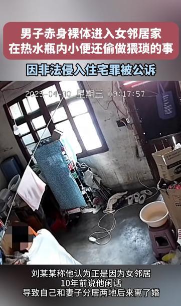 据法治进行时9月19日消息,一女子回家之后,发觉家中热水壶里的水散发着奇怪的异味,她赶忙查看监控是怎么回事,而监控画面令她惊愕不已。 事情的起因是在孙某(化名)下班回家的时候想倒杯热水喝,不料等她将水倒出来之后却发现水是黄色的,还带着刺鼻的尿骚味,她当场恶心到反胃,杯子差点掉在地上。 为了确认,她把水壶反复刷干净,又重新烧水,但味道依旧没有消失。随后孙某为了调查这到底是是怎么回事于是就在自己家里面安装了一个摄像头。 不料过了一个月之后等她回到家里面的时候这样的事情又发生,于是孙某就立刻查看监控,想要看看到底是怎回事,不料,看到监控画面的时候令她陷入了崩溃。 孙某的邻居竟然光着膀子进了她的家,而且进去之后就直奔她的热水壶,随后便在热水壶里面进行了小便,那么男子之所以会做出这样的事情还得从十年前说起。 孙某那时候和邻居的妻子玩的很好,相互之间就经常开玩笑,孙某当时给他的妻子说,他不顾家等一些不好的话,就这样邻居就怀恨在心了。 随后等他与妻子离婚之后,就直接把自己多年的不幸全都归咎在孙某的身上,酿成了今天的恶行。 面对这样的行为孙某立马就选择了报警,随后警方便开始了取证调查,目前邻居已经因非法侵入住宅罪提起了诉讼。 但经过这一事情之后,孙某回到家之后就会感受到恐惧、害怕,家对她来说再也不是一个温馨的港湾了。 那么通过这件事情让大家明白,独居女性要格外注意保护自己即使是自己的邻居也要保持一定的距离。此外如果遇到这样的事情的时候,一定要选择通过法律来维护自己的权益。