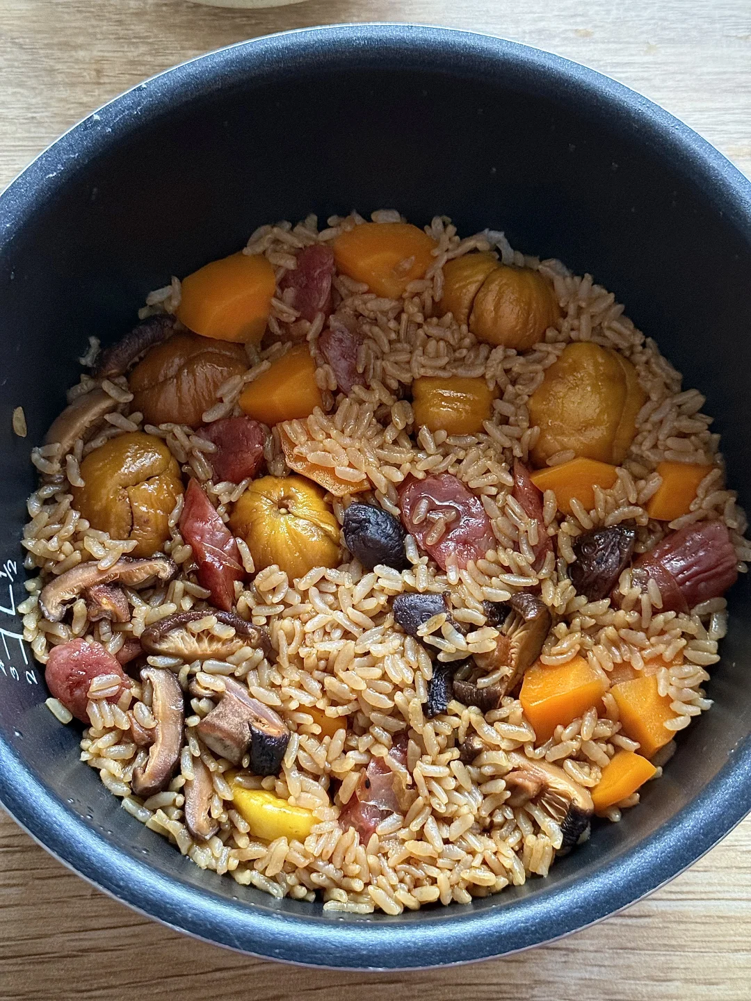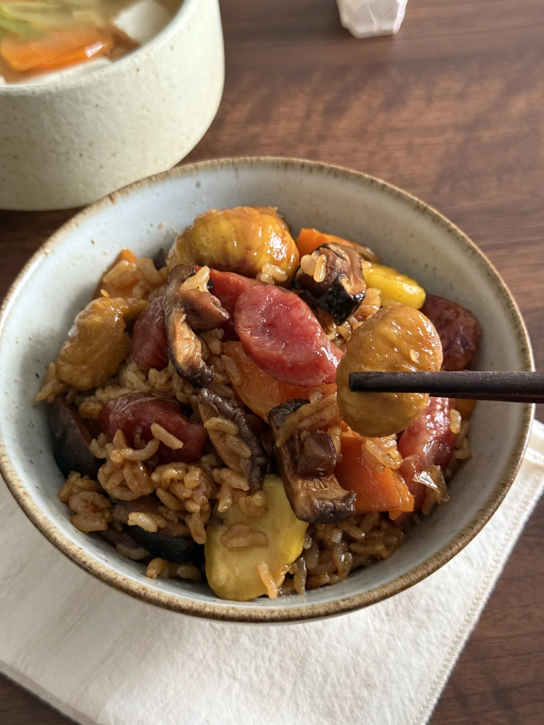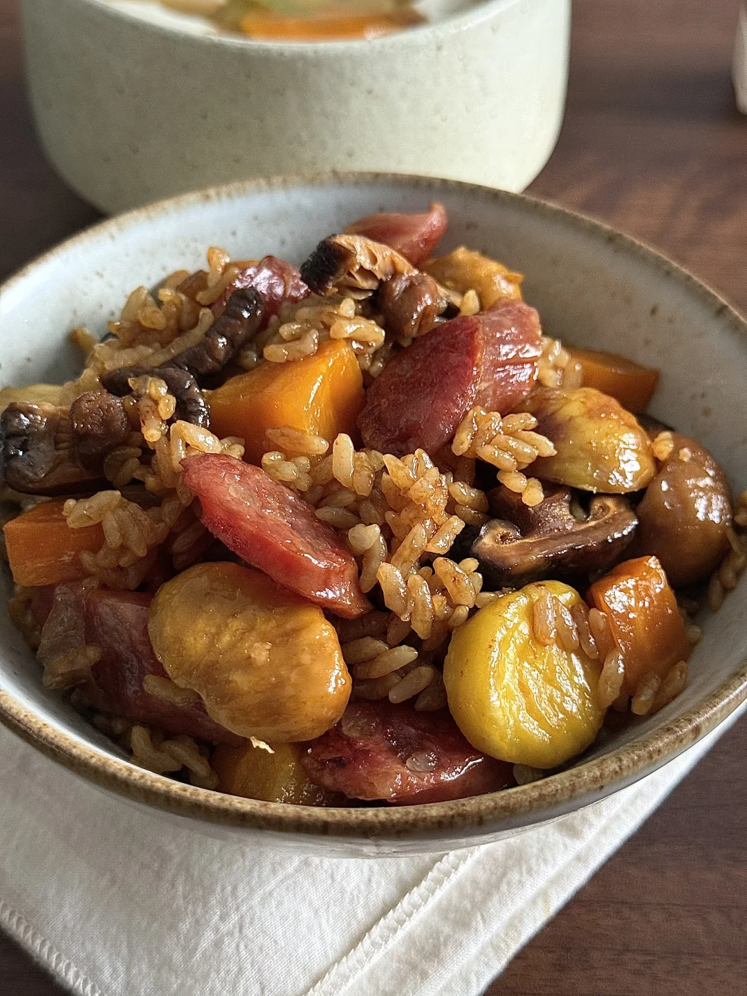 ✨一整个被香到迷糊!! 板栗的清甜+腊肠的油润+吸饱汤汁的米饭 ,每一口都幸福感爆棚,做法也简单👉