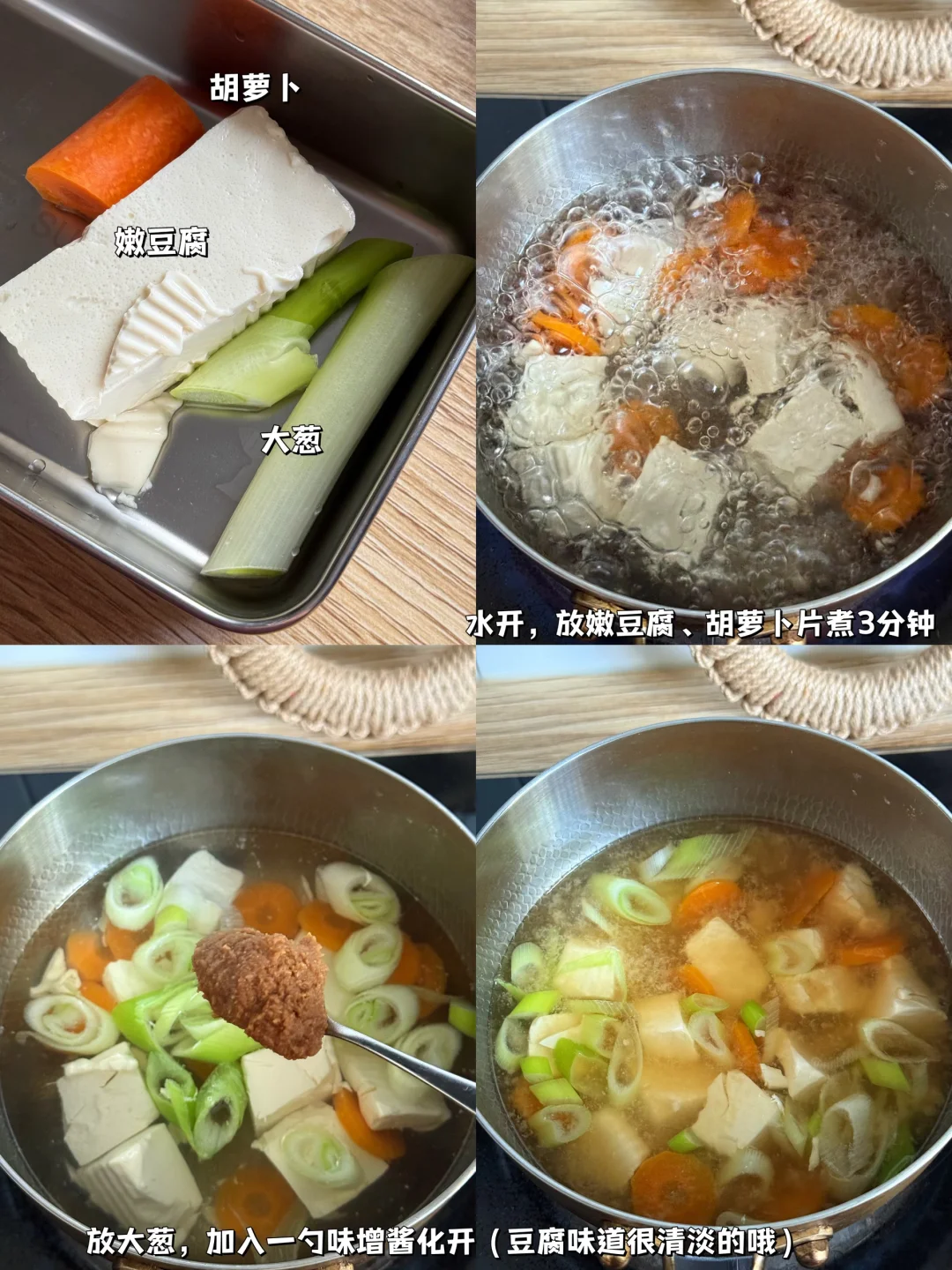 豆腐味增汤 ,没有油,只有味增的咸鲜味,比较清淡!